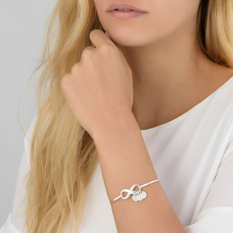 Onlineamericanstore Custom Name Accessories Personalized Infinity Bangle Bracelet With Initials Charms In Sterling Silver 925- Engraved With Any Names Text- Custom Jewelry Gift