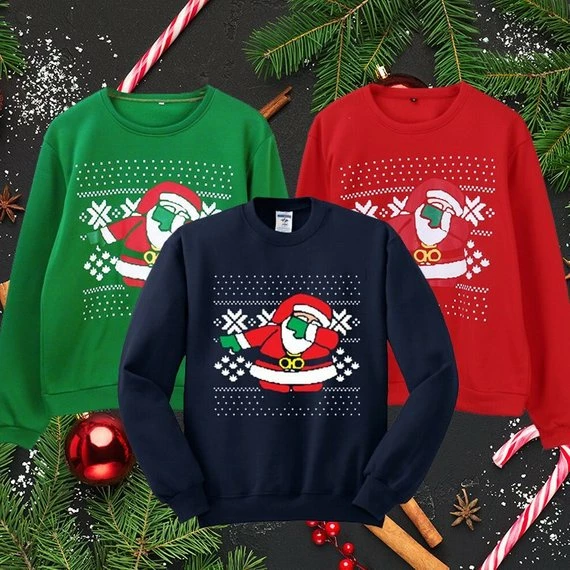 Made with high-quality fabric, the ribbing is made from cotton+polyester+spandex, cool sweatshirt with silkscreen handmade, silk screen can ensure the printing durable, soft, brighter colors even on darker shirts. We designed this Family Christmas Sweater because we believe that Christmas is the time of the year, that is why we pay attention to every single process from selecting the best fabric, high-quality garment factory and screen printing by our skilled expertise, so you could enjoy this Ugly Christmas Sweater with your family and close friends, especially with those who dab 🙂