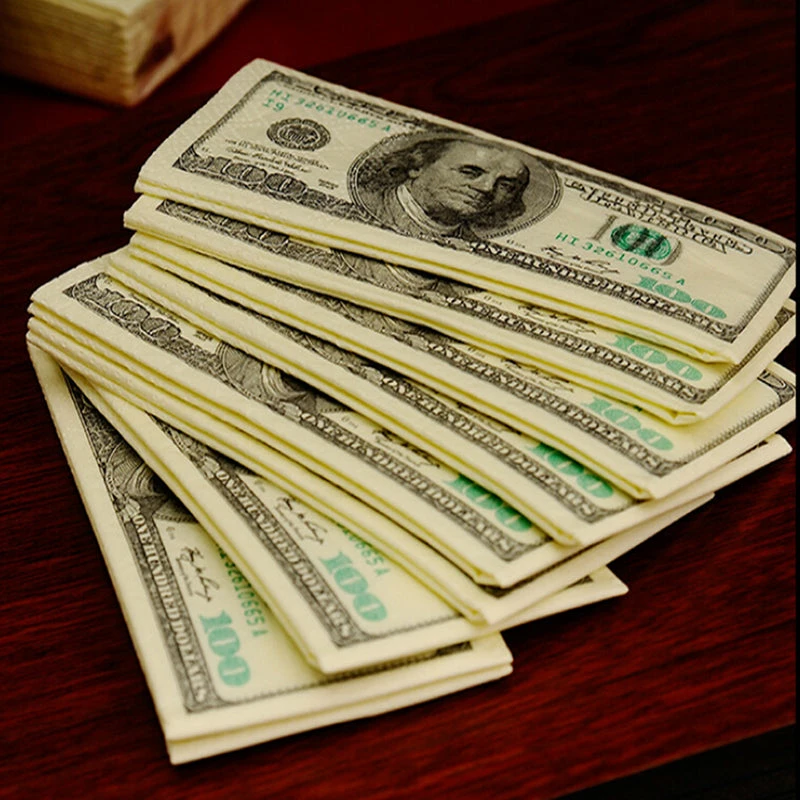 Onlineamericanstore Dollar $ 100 Bill Money Pocket Tissue Paper Napkins Joke Gift 4th July Party Casino Patriotic Theme Party Supplies