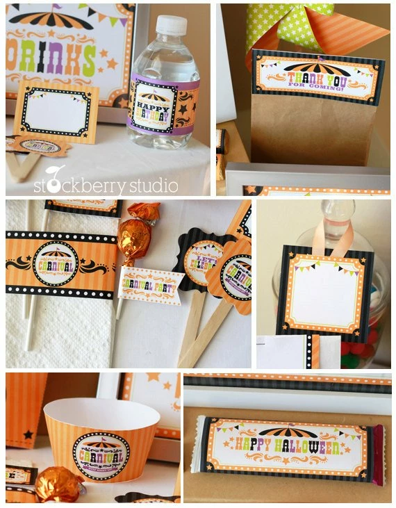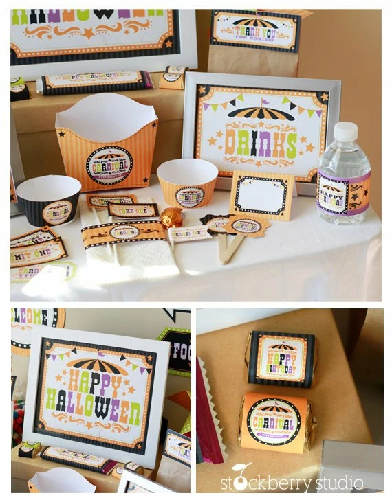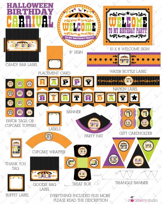 Printable Halloween Carnival Party Decorations – Instant Download – Orange, Lime, Purple & Black