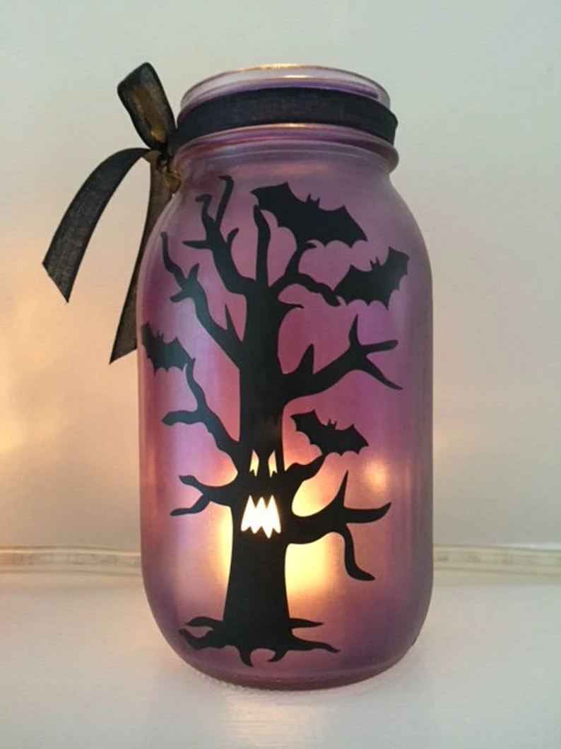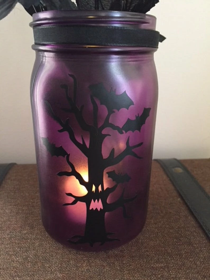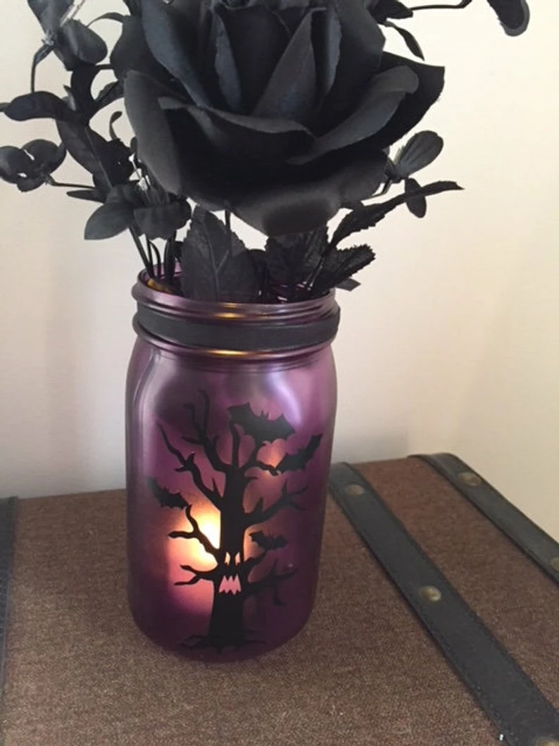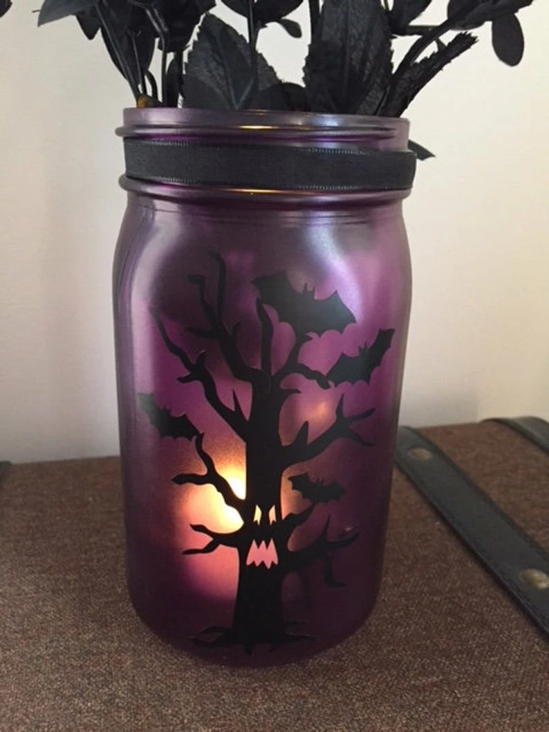Planning a Halloween party? This would make a great decoration for any Halloween Party or fall centerpiece for your table. Painted in deep purple or orange with black vinyl.