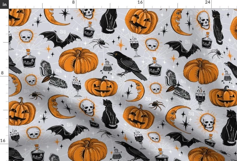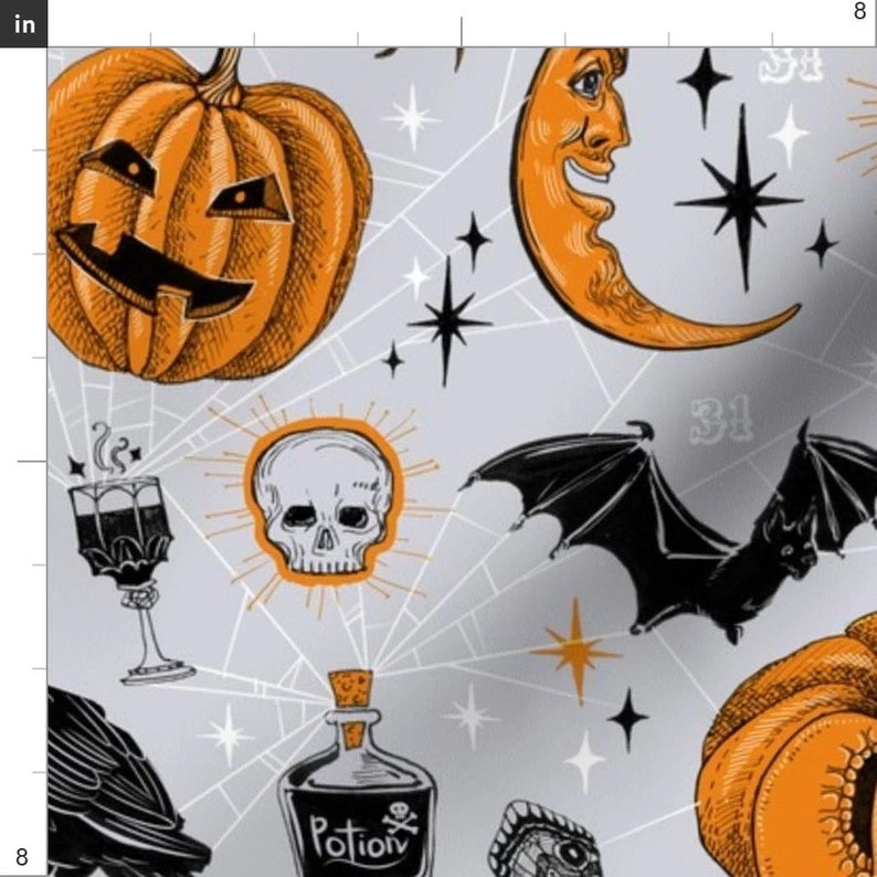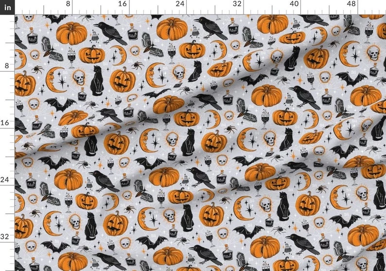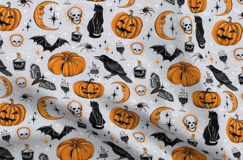 Halloween fabric, cute spooky fabric, witch fabric, Children halloween fabric 100% cotton Premium Quality designer Fabric for quilting projects, apparel, sewing general arts and crafts, clothing and home decor.