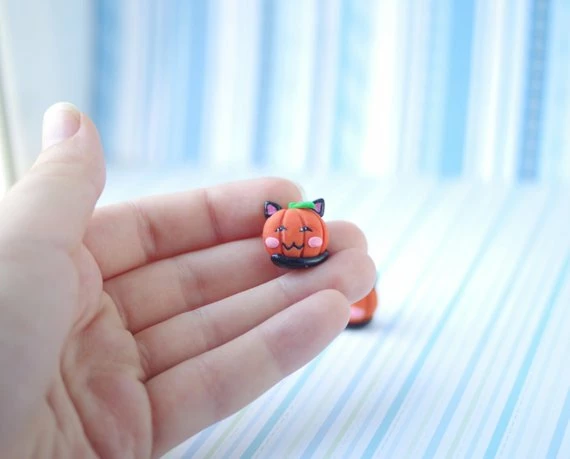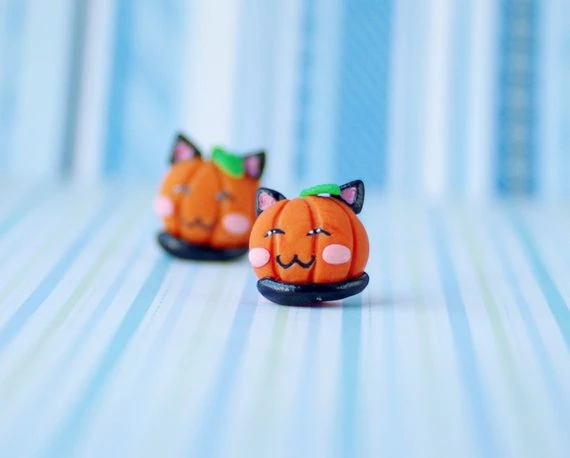 This cute, kawaii Halloween pumpkin earrings look like as black cat 🙂