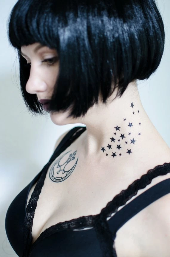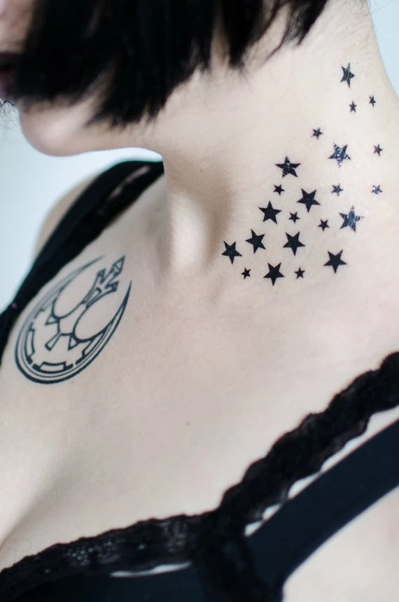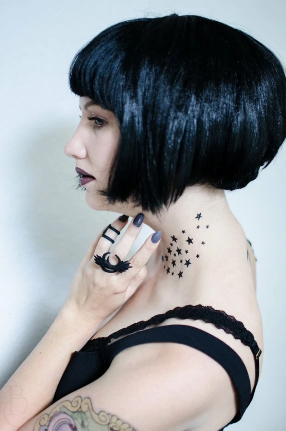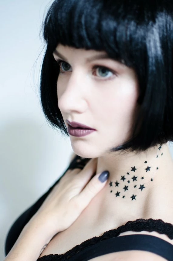 Seventh Skin exists to put beautiful art on your body that you can change, often and at will, for any aesthetic. This Spray of Stars can be applied as-is out of their packaging (as pictured), OR you can cut the stars out individually and apply them anywhere and everywhere. Enjoy!