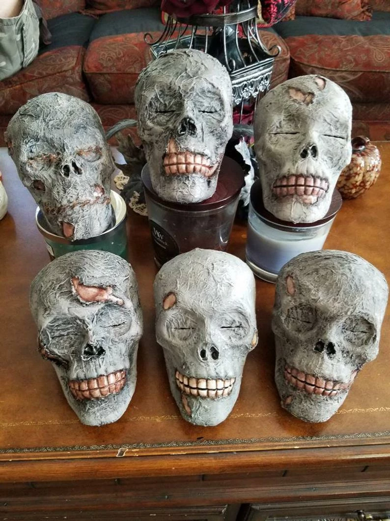 Creepy, fun and very realistic mummy heads perfect for any Halloween display! So wonderfully life like,your Halloween guest will be amazed! Each one is handmade and unique. We will send a random, hand picked head for each order.
