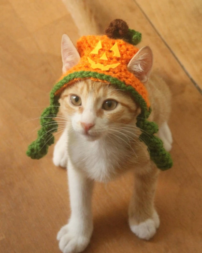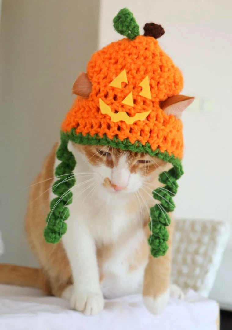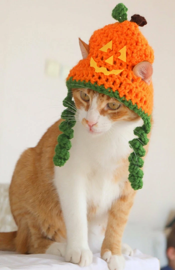 Want your little pumpkin to dress up for Halloween this year? These jack-o-lantern hats make adorable Halloween photo props for your smaller four legged friends.