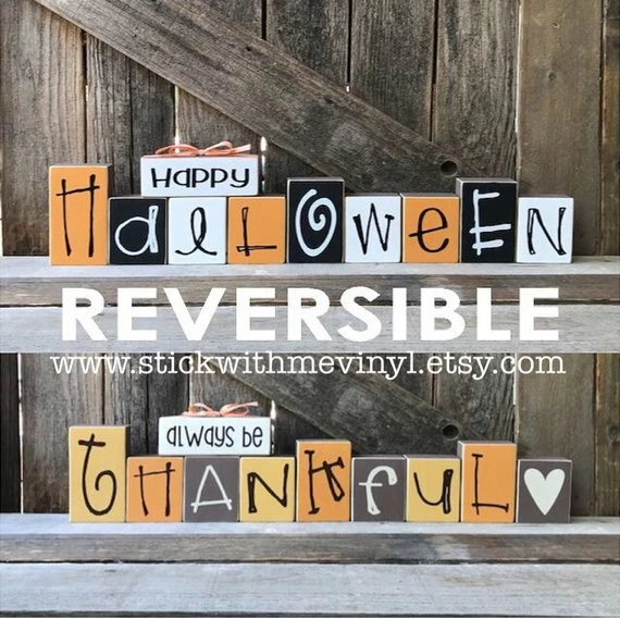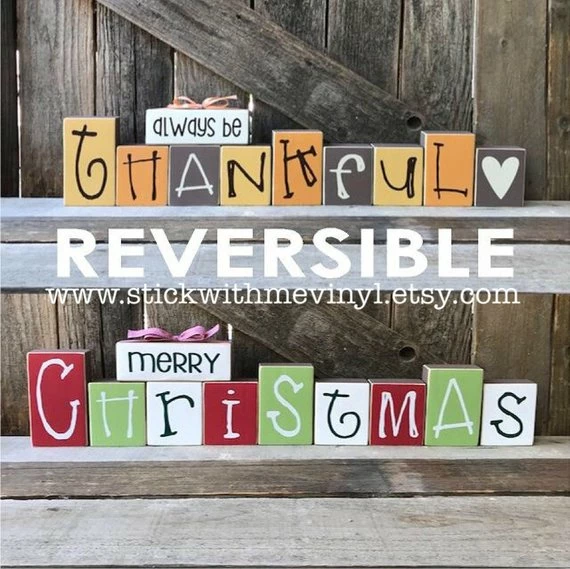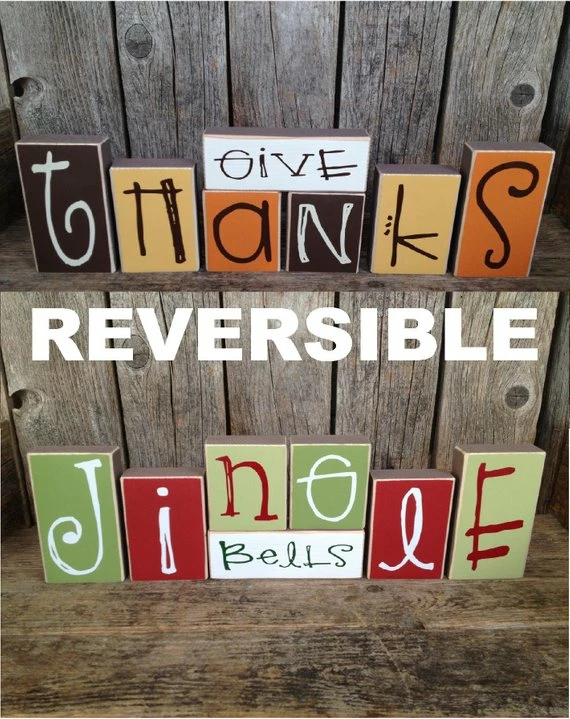 one side thanksgiving/ fall decor and give it a little turn and they are christmas blocks…
