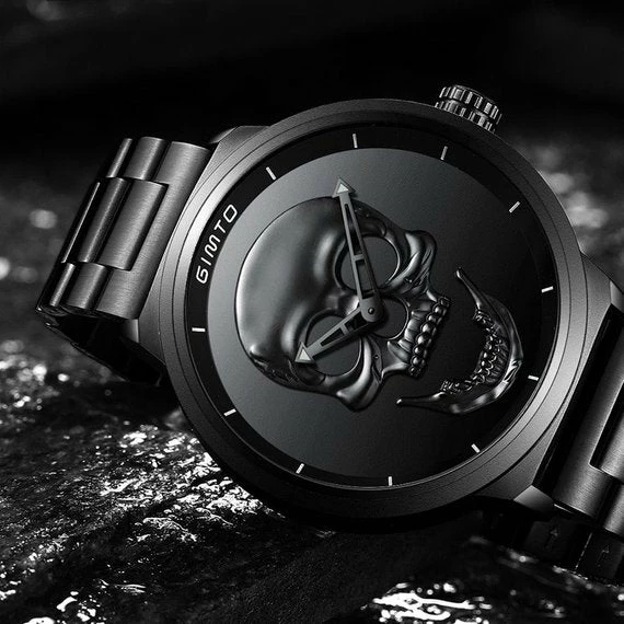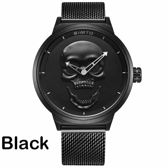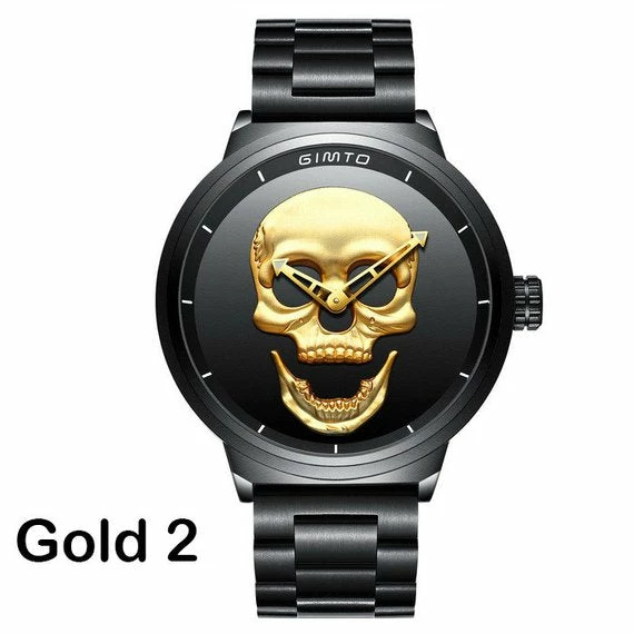 Men’s 3D Skull Watch – Luxury Steel Gold, Black Vintage Quartz Men’s Watch, Men Gift Watch, Day Of The Dead Gift Watch.