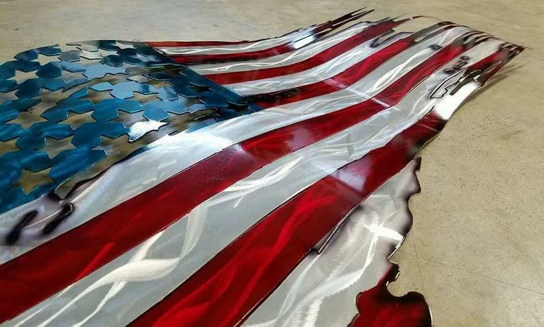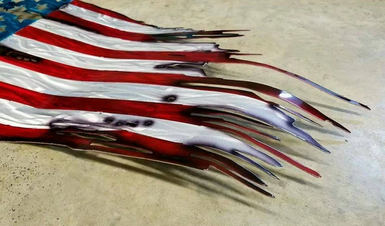 Onlineamericanstore Metal American Flag Tattered War Torn And Distressed