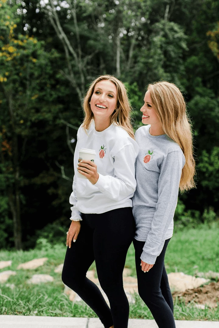 Our Pumpkin Long Sleeve T-Shirt will be your favorite fall go-to piece. Dress up with a pair or jeans or dress down with a pair of leggings! Perfect under a fall vest! Unisex sizing, t-shirt available in White, Grey, and Black!