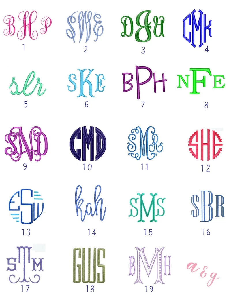 1. Monogram (The order of the monogram is as follows: first initial -LAST NAME initial – middle initial)