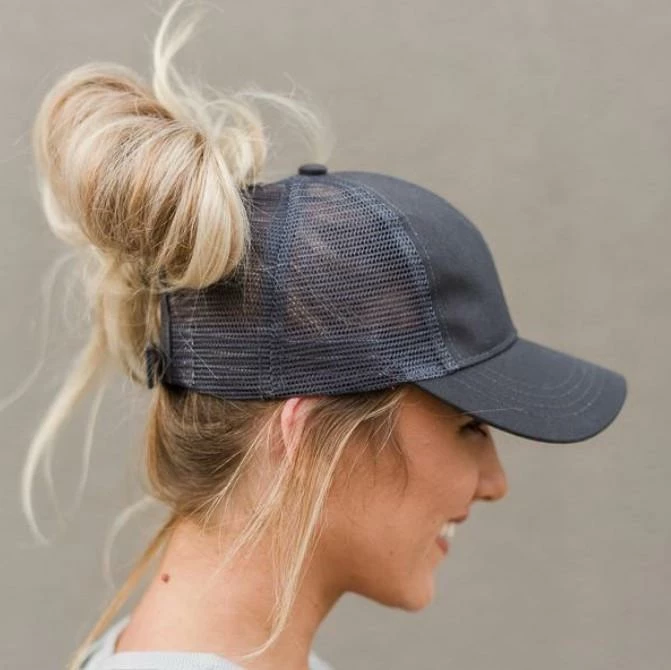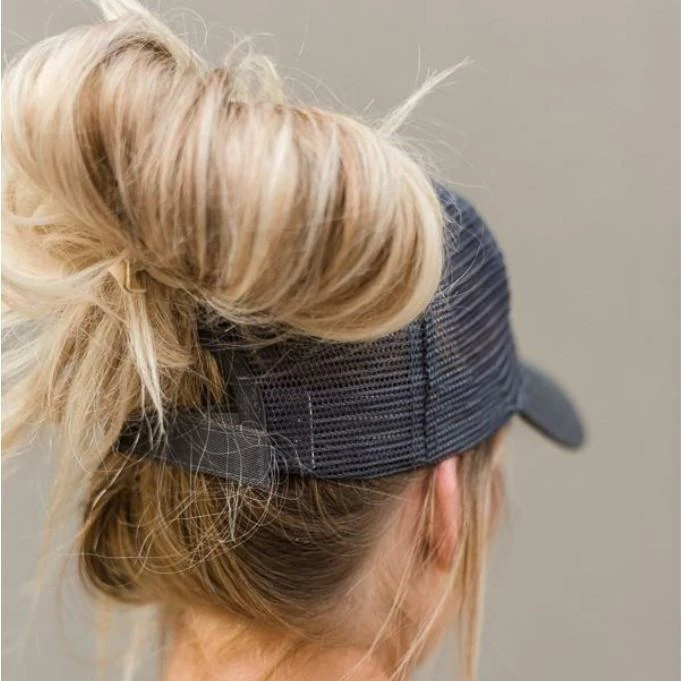 Onlineamericanstore New Arrivals Ponytail Hair Baseball Cap Women Messy Bun Baseball Summer Hat Snapback Grid