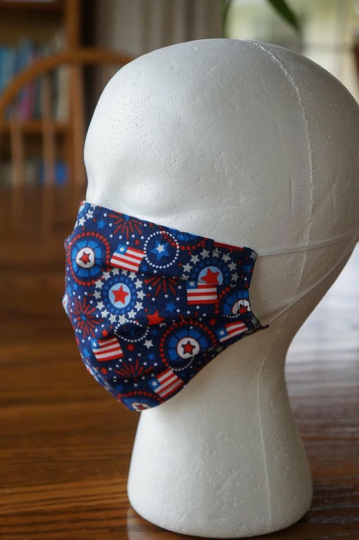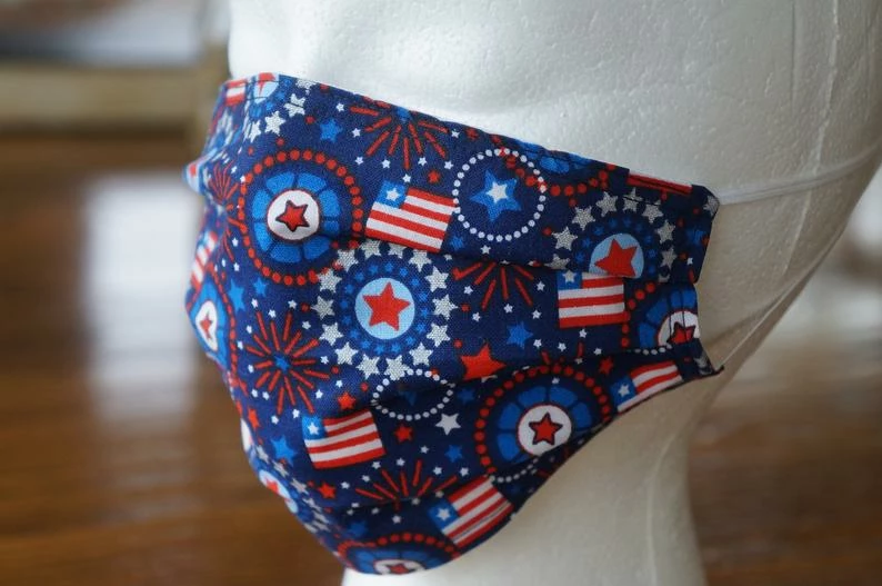 Our pleated-style mask has two elastic ear loops, and comes in a variety of pretty prints! Easy to wash, store, carry, and wear. They do NOT have a filter pocket, as they are not recommended at this time. Contact us if you need a pocket.