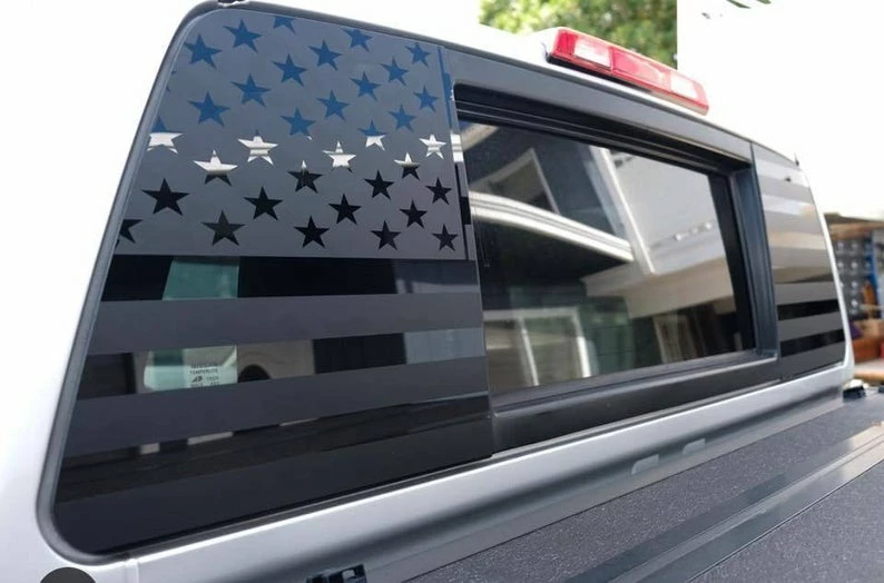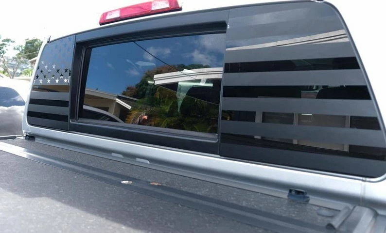 Most of our flag decals are pre-cut to window shape and either need a tuck or trim.
