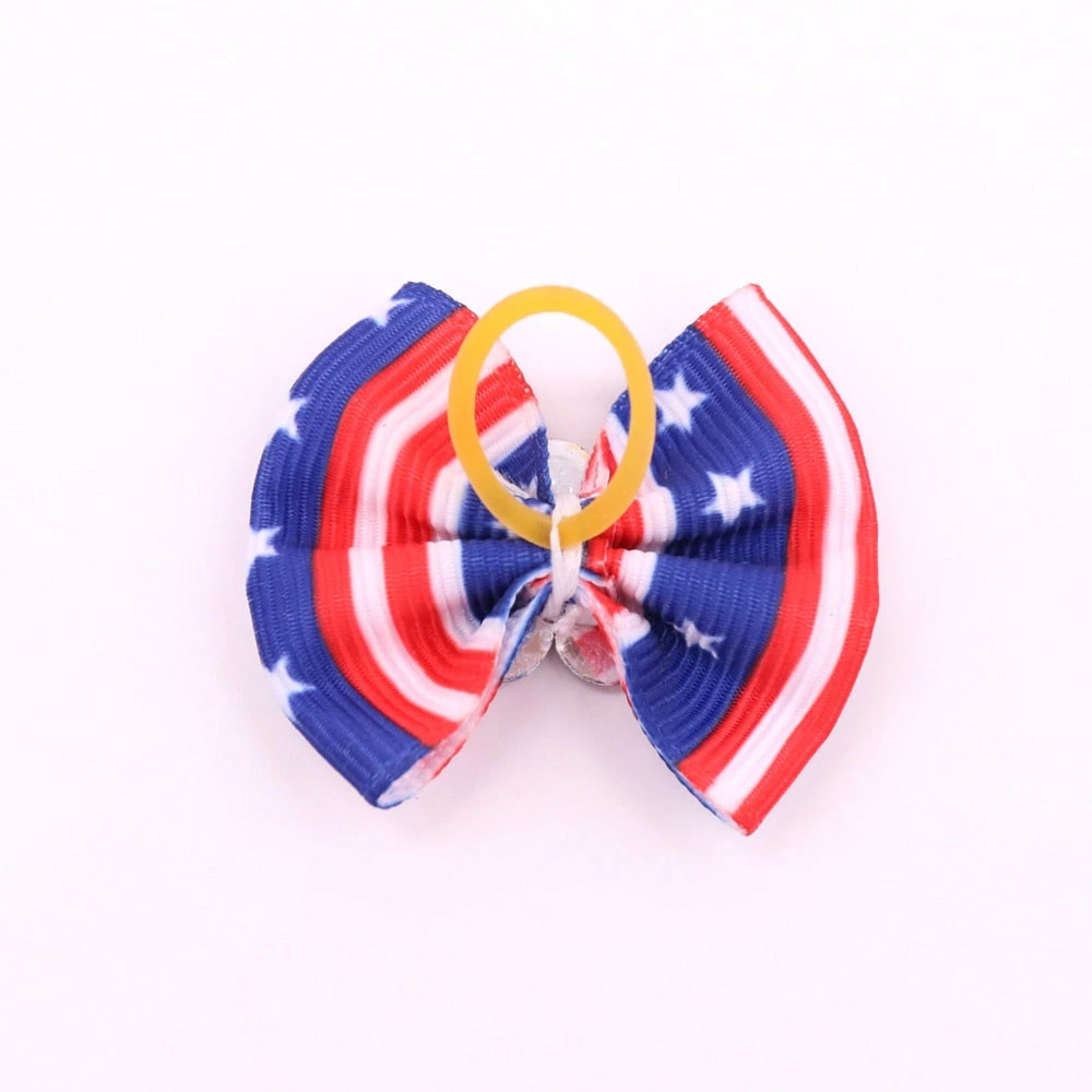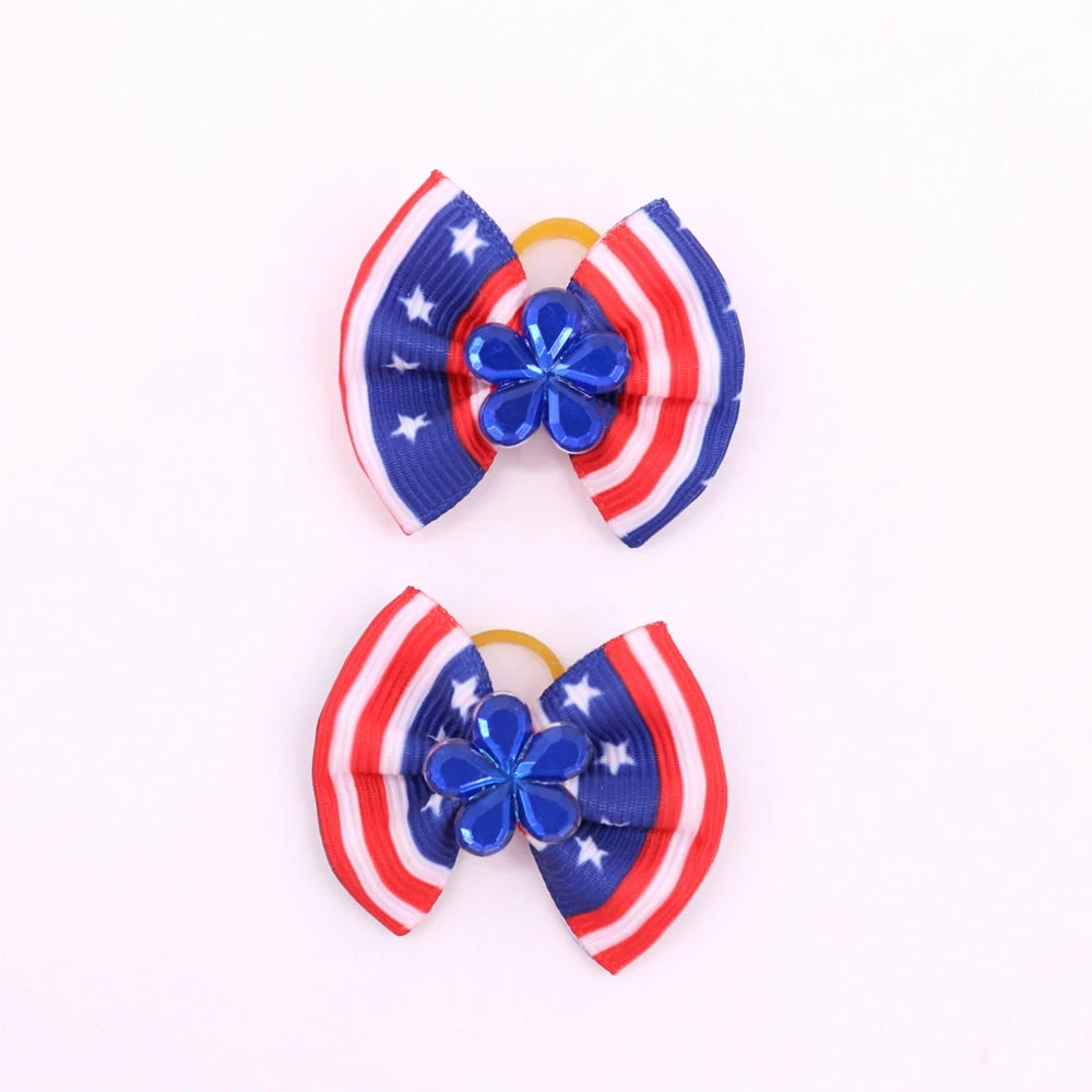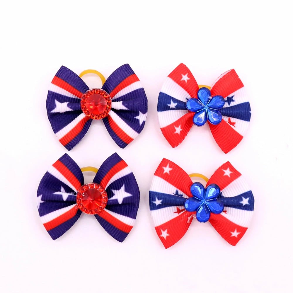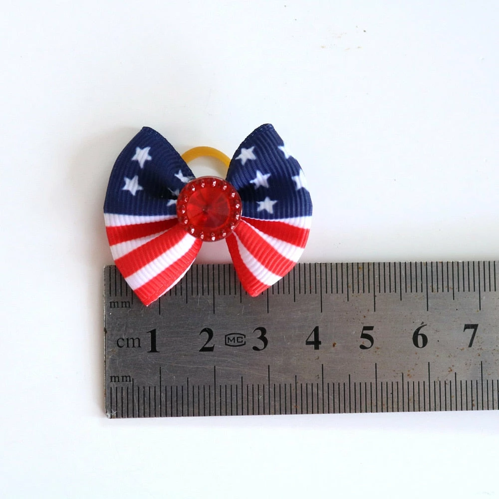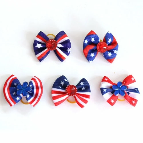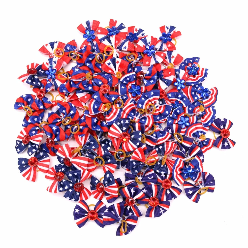 Onlineamericanstore Patriotic Theme Party Supplies 60pcs Handmade Pet Puppy Dog Cat Hair Bows For 4th Of July With Rhinestone Red White Blue Pet Hair Accessories Pet Supplies