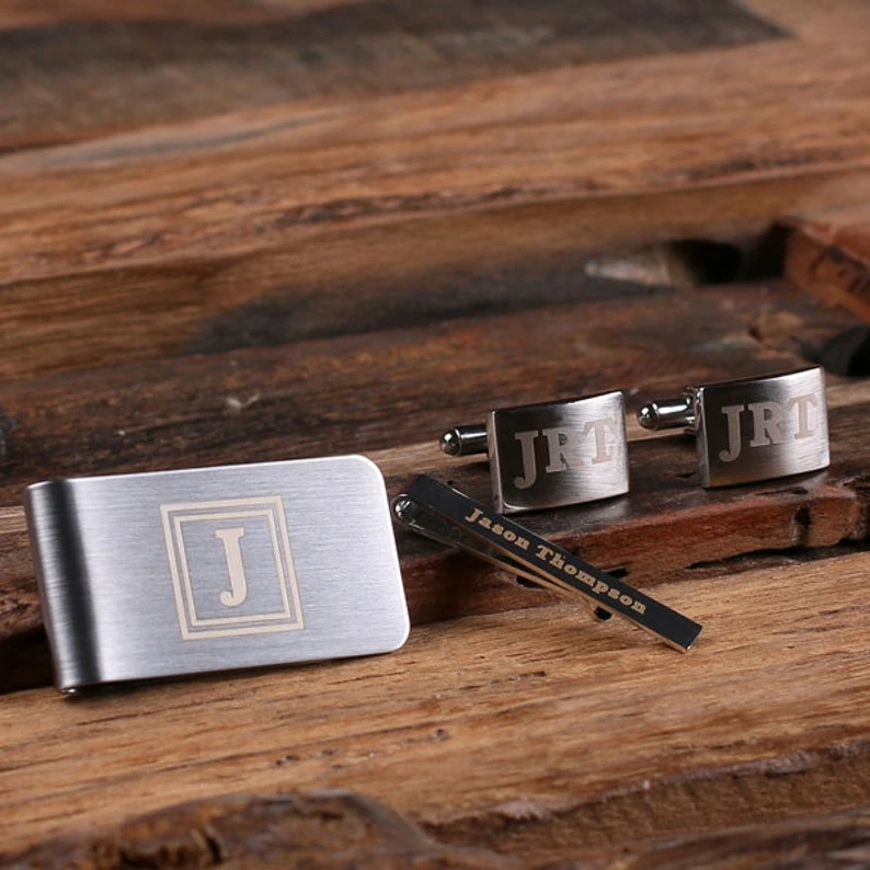 Onlineamericanstore Personalized Gentleman’s Gift Set Cuff Links, Money Clip, Tie Clip Groomsmen, Father’s Day And Dad Men Boyfriend Christmas (025332) Gift Collection