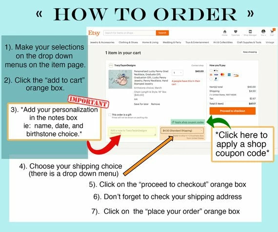 ENTER ALL INFORMATION IN THE NOTES BOX DURING CHECKOUT.