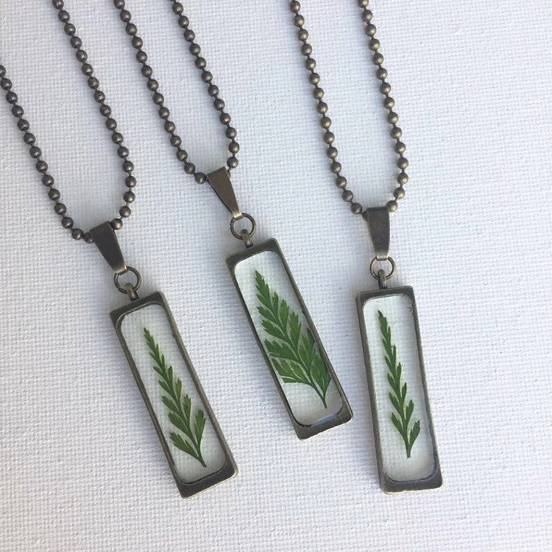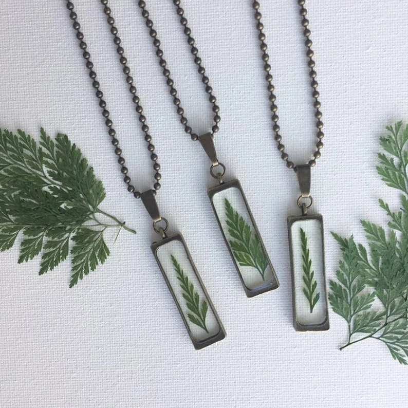Take nature with you wherever you go with this beautiful hand-made pressed fern resin necklace.