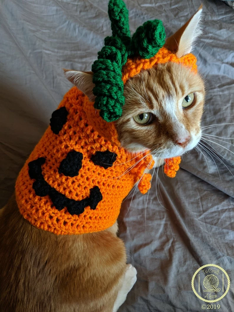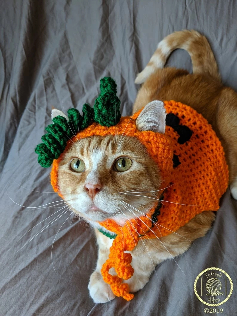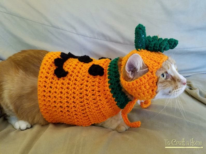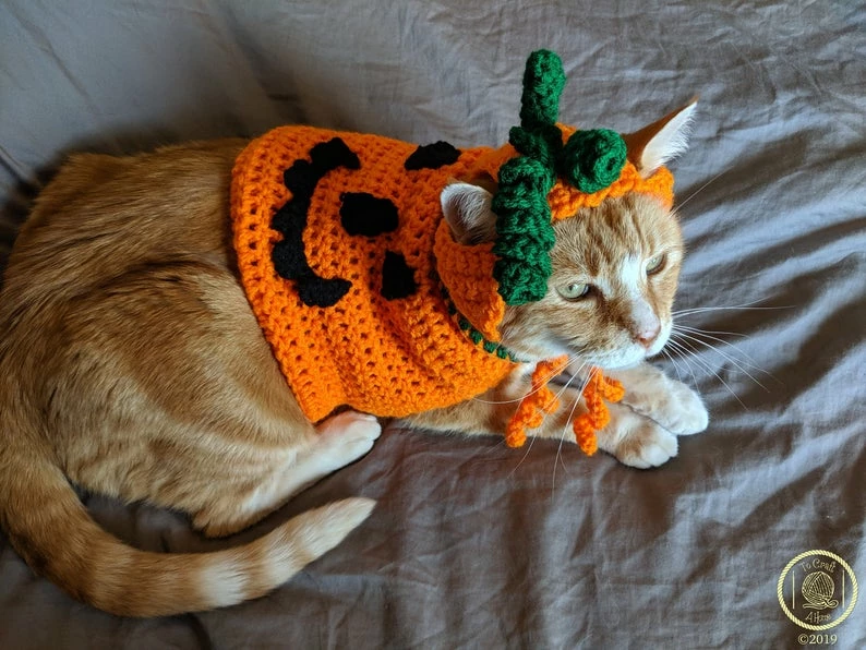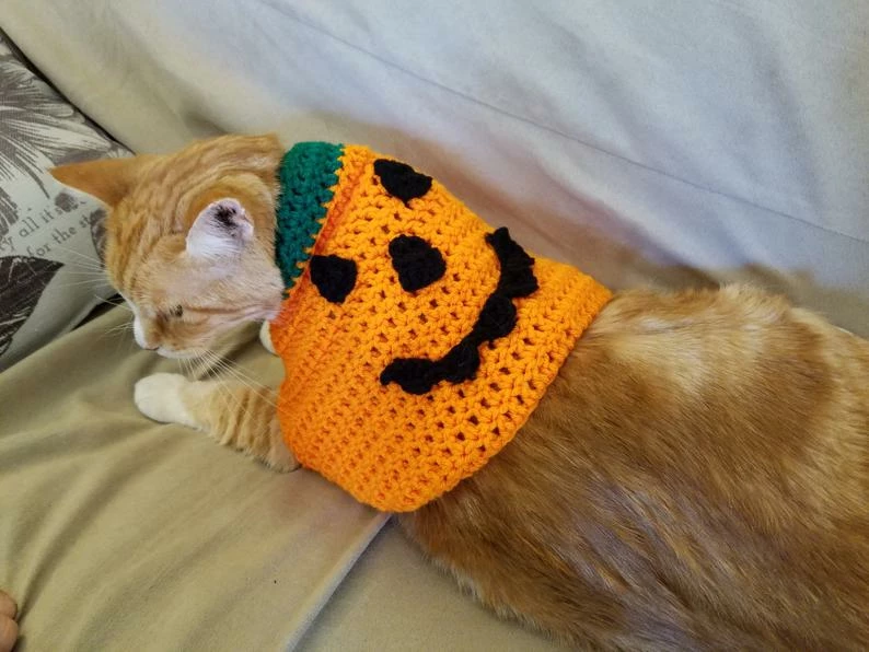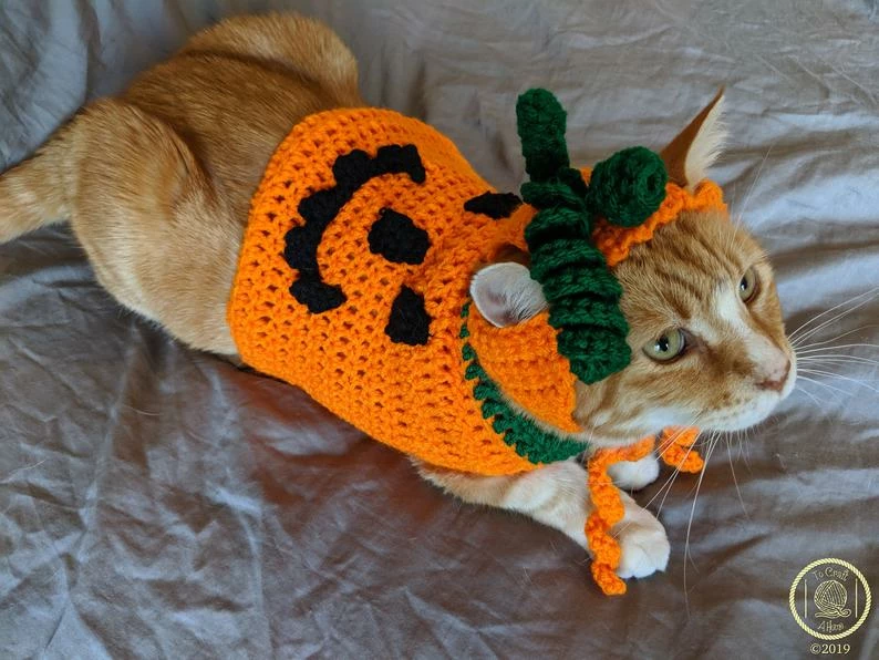 Who says cats can’t dress up for Halloween too? For sale is this pumpkin cat costume/sweater! Your cat will be your perfect jack-o-lantern companion while passing out trick or treats!