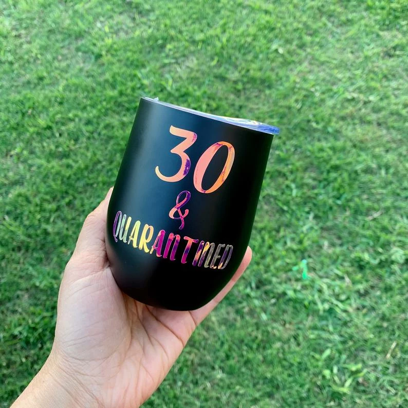 This Wine tumbler is a a great gift for your girlfriends or to treat yourself. Made from double walled stainless steel, it will last a lifetime! The writing we have used is with metallic foil vinyl and is NOT dishwasher safe. If used in accordance wit he care instructions, it will maintain all aspects as shown for a long time.