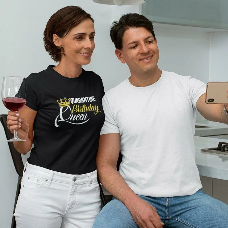 Quarantine Birthday Queen clothing. Funny virus jokes for the quarantine birthday girl to keep her strong, positive and optimistic.