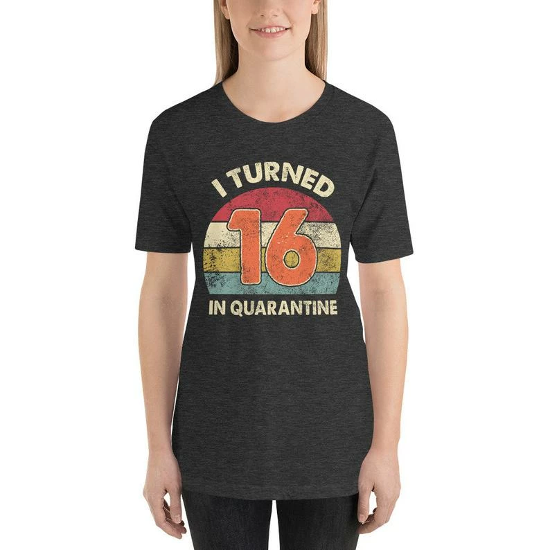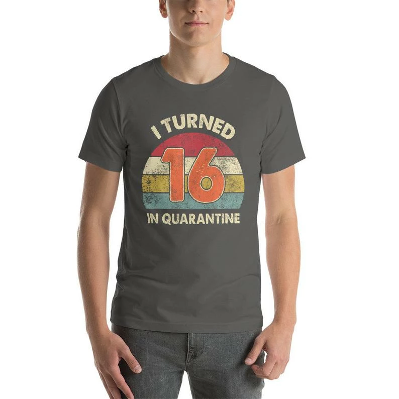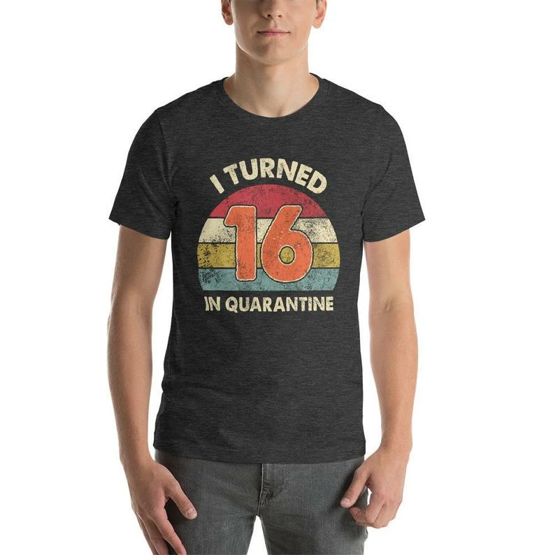 Celebrate your birthday with this awesome vintage style tee that reads I Turned (age) In Quarantine in distressed text! Makes a funny birthday gift idea for your introvert! Get your hands on this cool outfit who is getting adjusted to this new way of life!