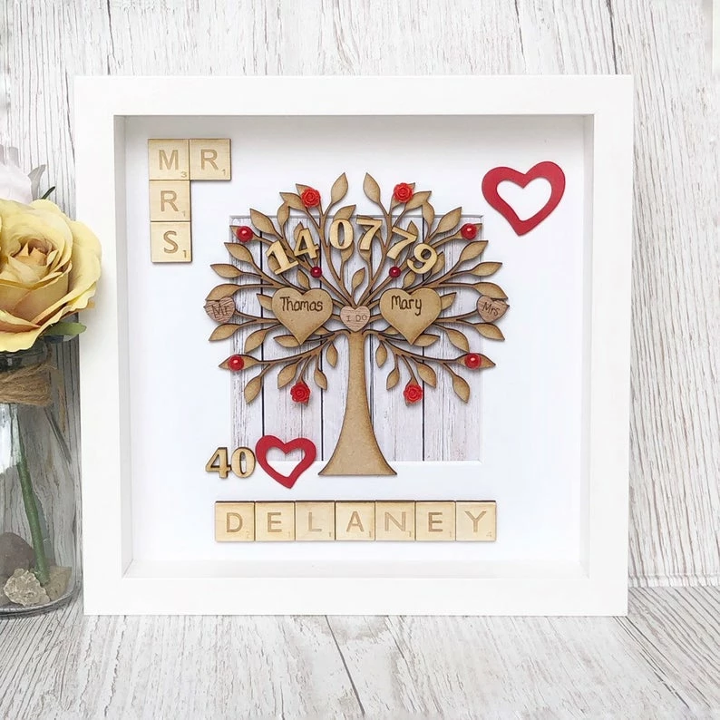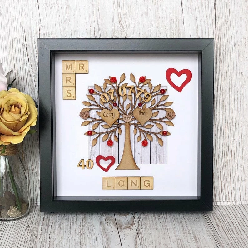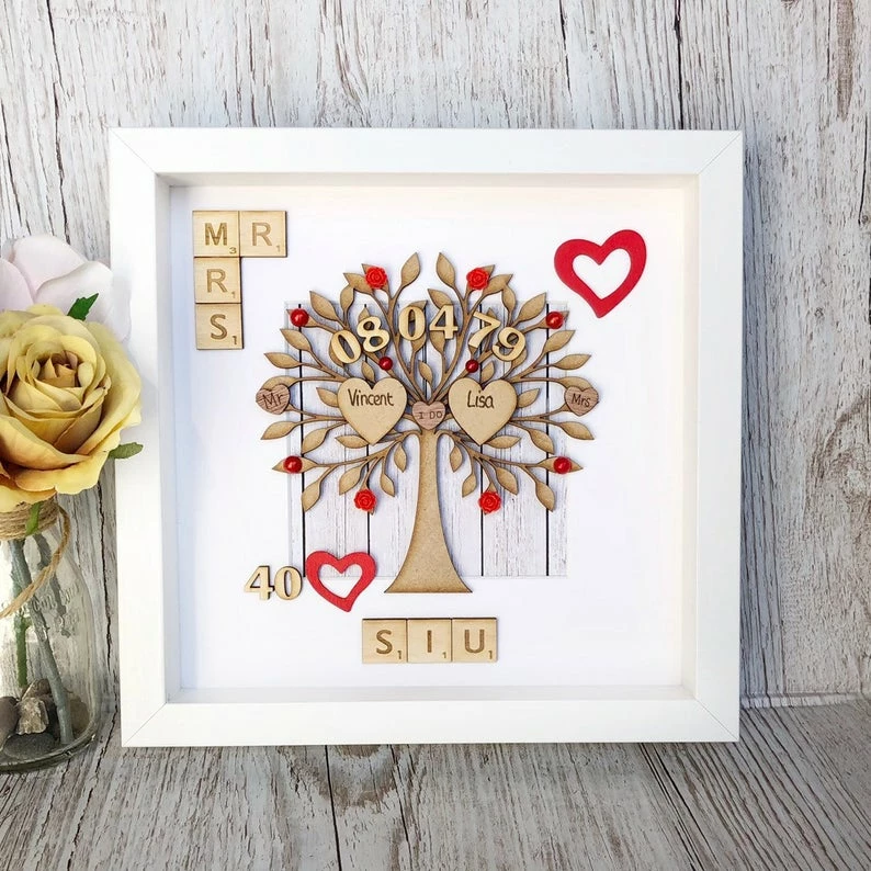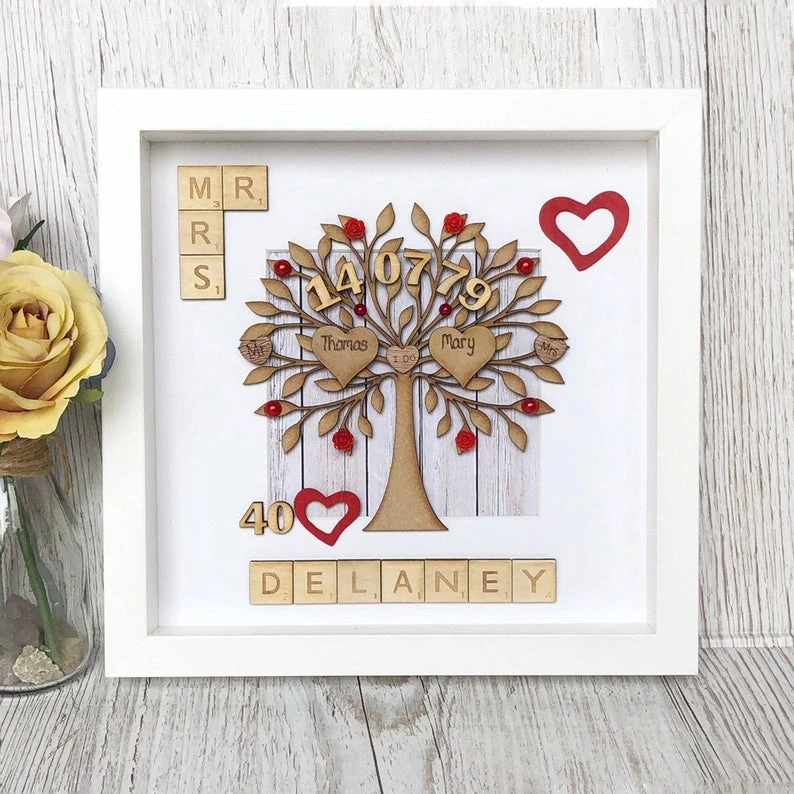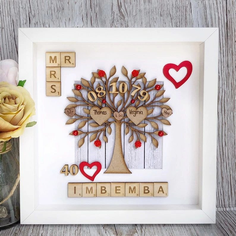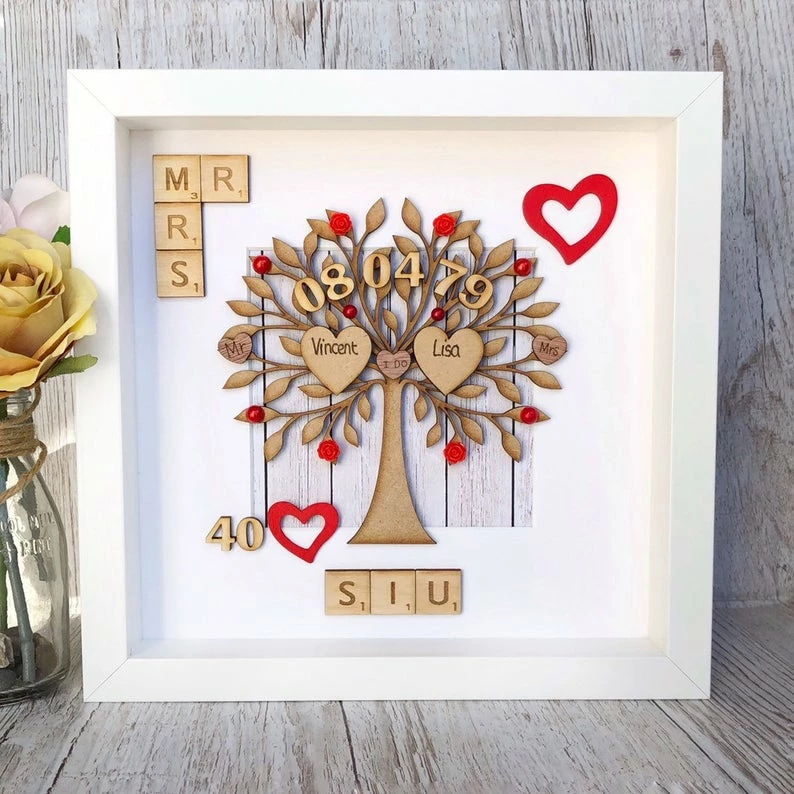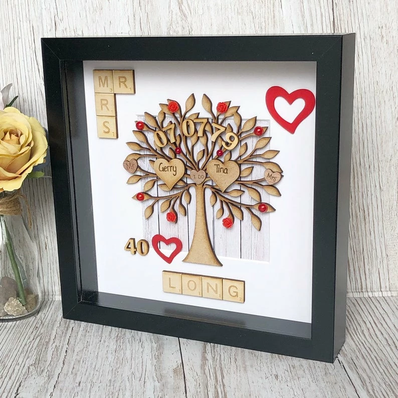 Onlineamericanstore Ruby Wedding Anniversary Gift | Personalised 40th Wedding Anniversary Box Frame Keepsake | Parents Anniversary Gift Collection