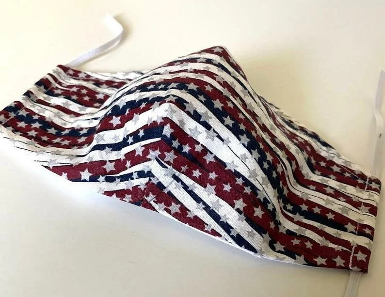 Star Face Mask with Filter Pocket, Patriotic Star Face Mask for adult, Washable/ Reusable Face Mask,100% Cotton, MADE IN USA
