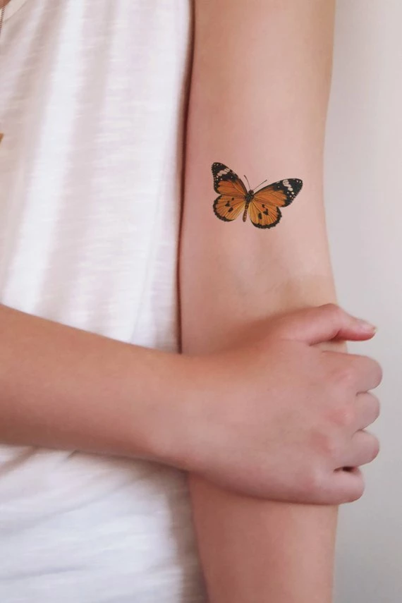 This listing is for one high quality temporary tattoo of a orange butterfly. Tattoorary offers high quality temporary tattoos that will last for two days up to a week. Application directions are included in your package.