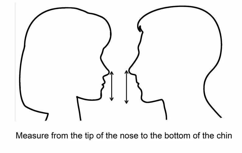 Measure from the tip of your nose to the bottom of your chin as shown in the measuring image.