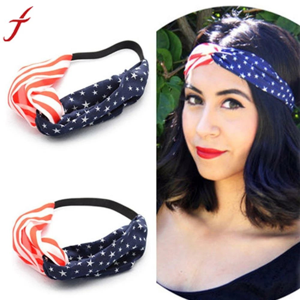 Onlineamericanstore Women American Flag Sporting Sweatband Stretch Headband Hair Band Hairbands Bandana Headwrap Girls Hair Accessories