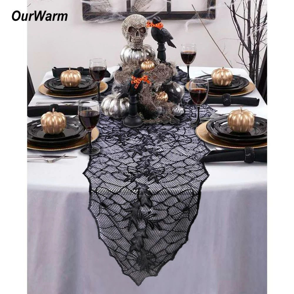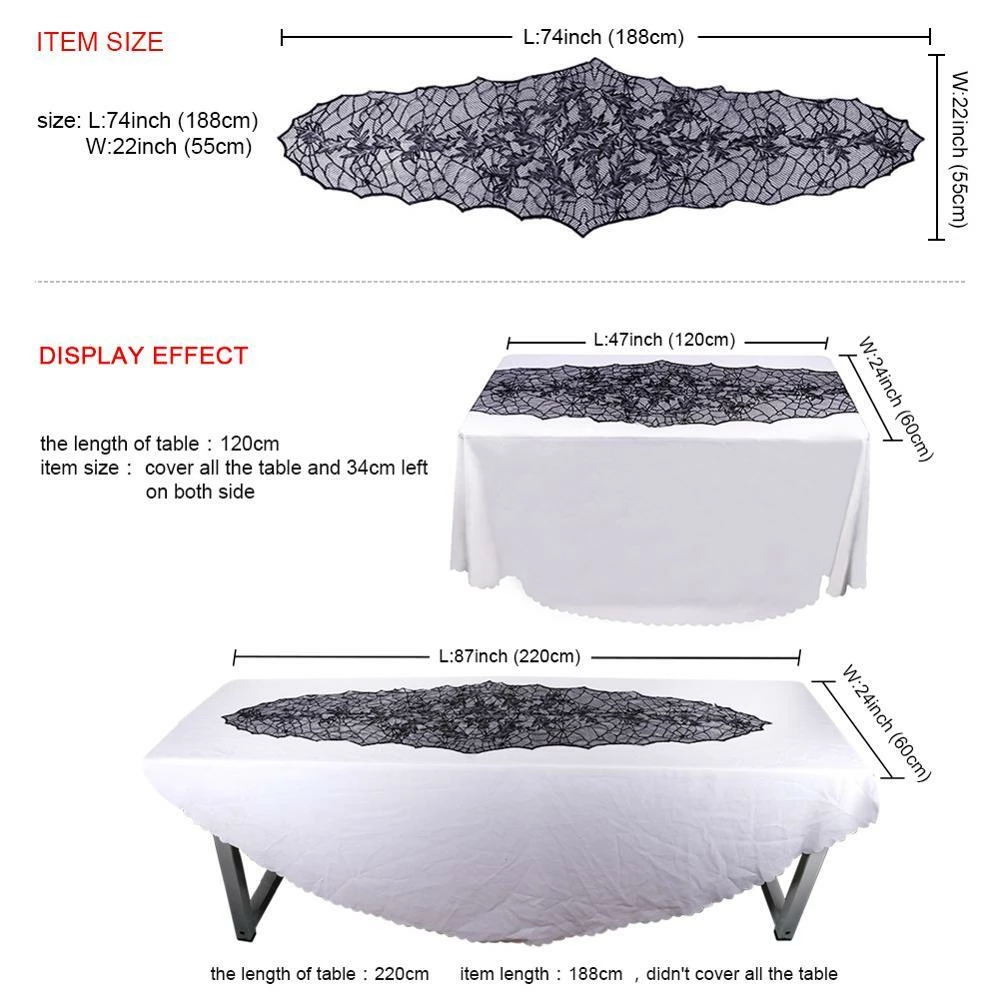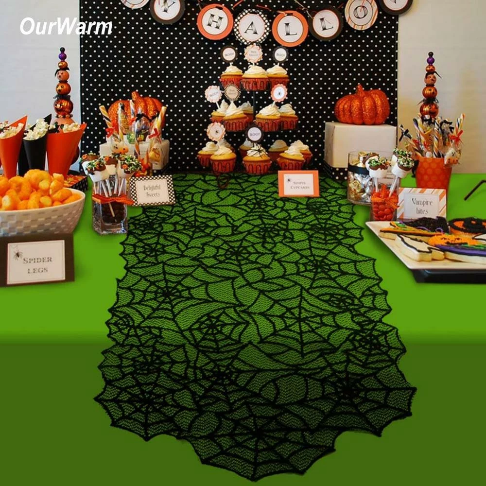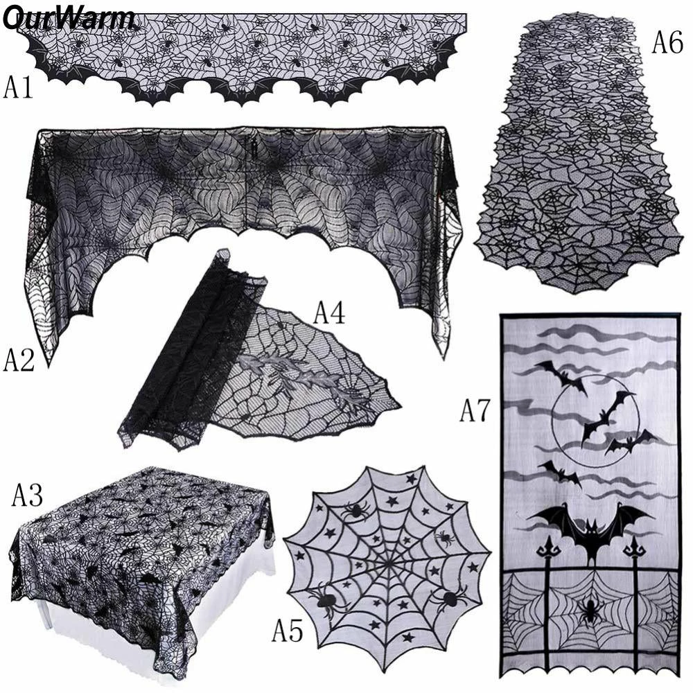 Our Warm Store Ourwarm 1 Piece Halloween Decoration Props Black Lace Spiderweb Fireplace Mantle Scarf Cover Tablecloth Festive Party Supplies Halloween Decorations