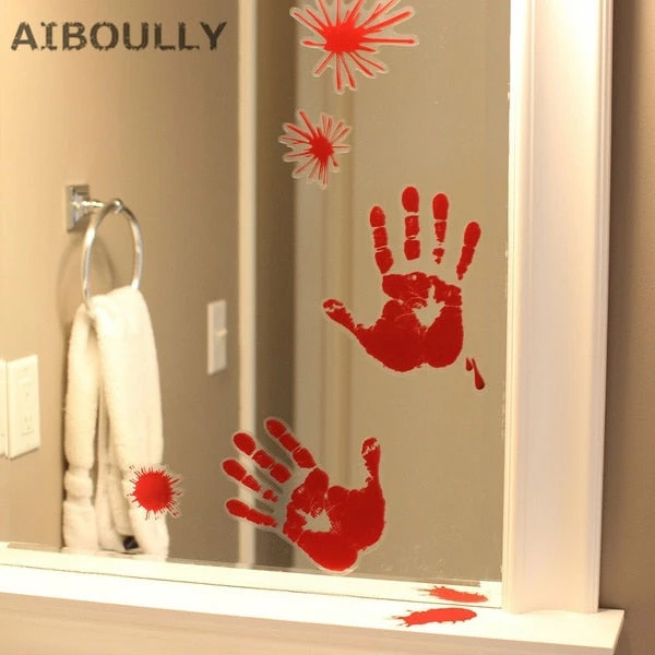 Party Favors Store Halloween Decoration Prop Window Mirror Clings Cling Bloody Handprint Footprint Spot Decoration Festive & Party Supplies Halloween Prop