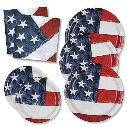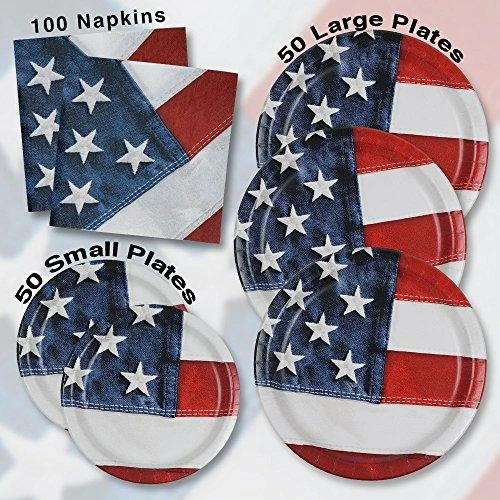 - Patriotic Party Pack for 50 Guests – American Flag Design Includes 50 Dinner Plates, 50 Dessert Plates & 100 Luncheon Napkins!!