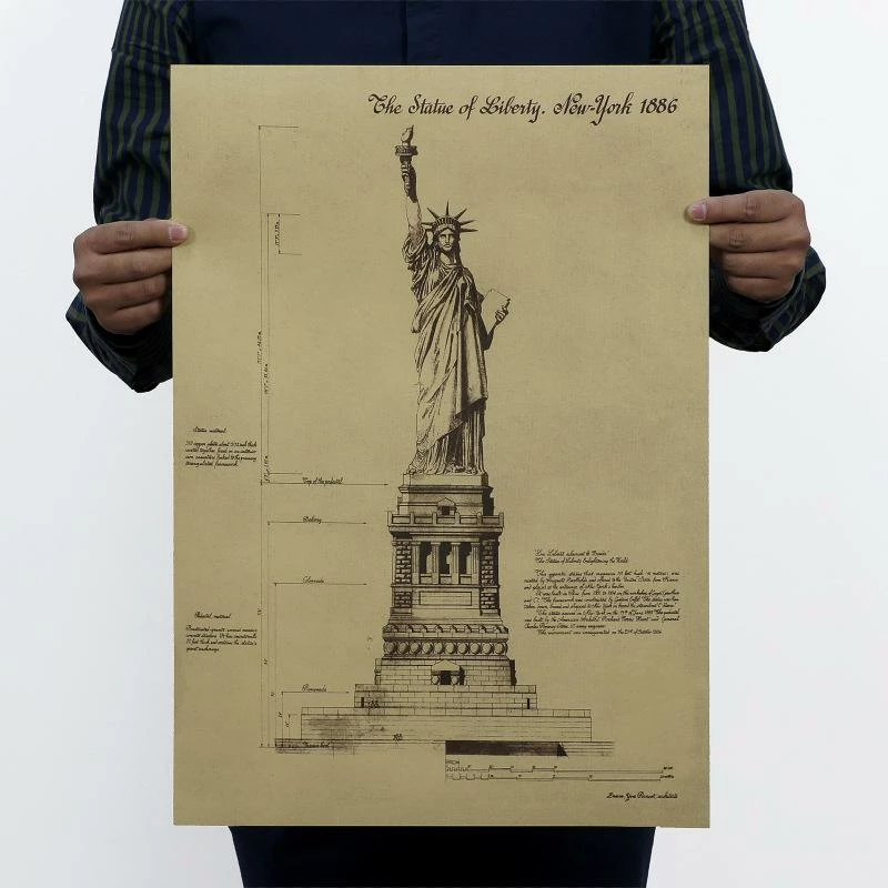 Seasonstorm Stationery Store Wall Decor & Art USA Statue Of Liberty Drawing Wall Sticker Kraft Retro Poster Painting Core Map DIY Home Garage Art Decoration Vintage Prints