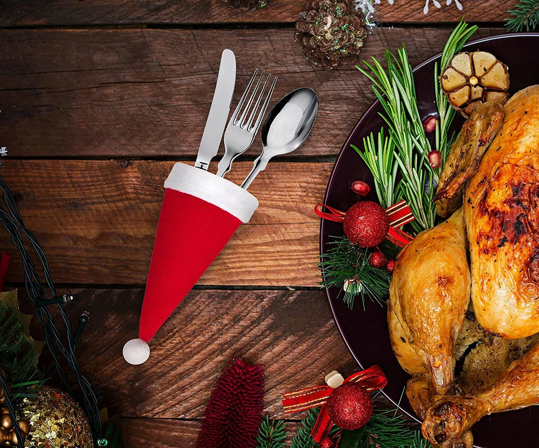 Shop2962068 Store Christmas Home Decor 10 Pcs/Set Christmas Hat Cutlery Bag Candy Gift Bags Cute Pocket Fork Knife Holder Table Dinner Decoration