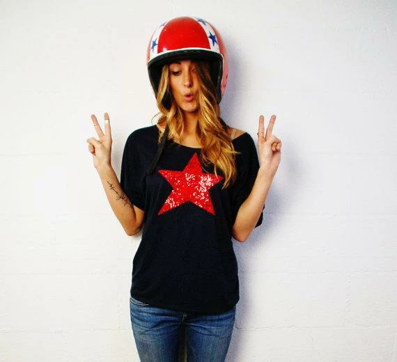 Love and Bambii’s 4th of July sequin star tee. This slouchy, loose fit t-shirt is sure to become a favorite.