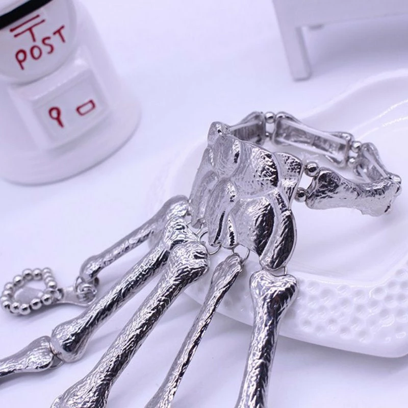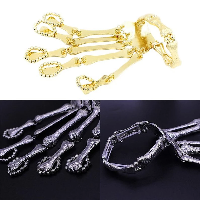 Show Lifestyle Store Hot Sales Halloween Props Gift Fun Nightclub Party Punk Finger Bracelet Gothic Skull Skeleton Bone Hand Finger Bracelet