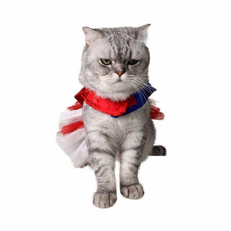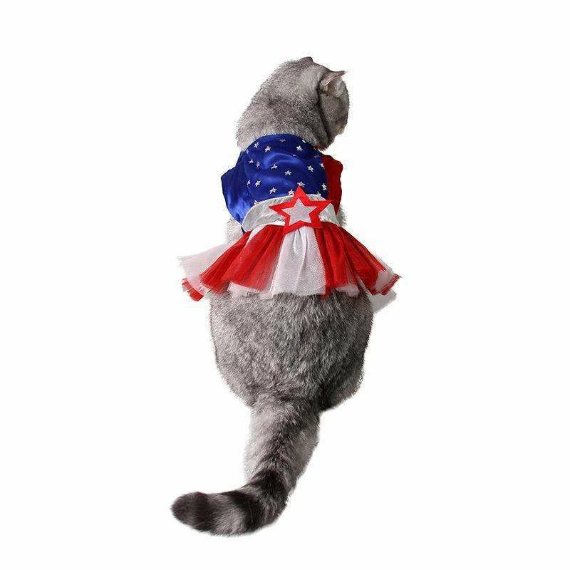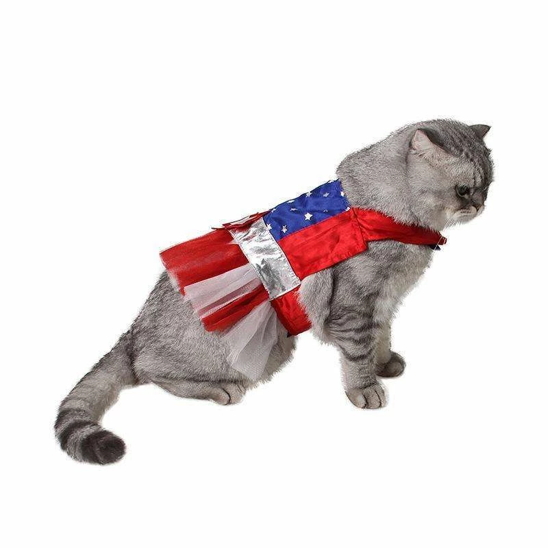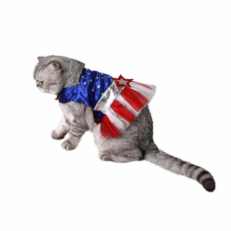 Smile365 American Style Red Blue Stripe Star Pet Cat Dog Costume Cosplay Perform Cloth Cloak Birthday Party Gift Pet Supplies