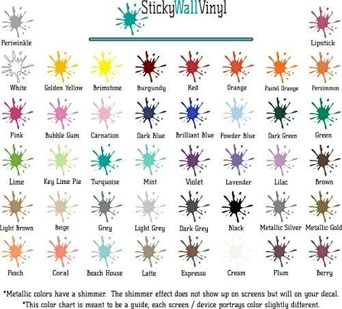 This vinyl wall decal is the perfect addition to any home. It would also be perfect to put in your living room, dining room or even sitting area! This wall decal has a matte finish and looks like it’s painted wall decor after applying. Works on smooth and lightly textured walls only. Peel & Stick construction makes this wall decal very easy to install. Color chart and policies are shown above. All colors in chart are available but may not show in color drop down menu. If you would like a color not in the menu, just contact us. All of our wall decals are removable for up to 2 years but not reusable. Check out the Sticky Wall Vinyl store to see hundreds of handmade vinyl wall decals that are a perfect way to decorate your home or give them as a Christmas gift! INITIAL: Before ordering , please look at the picture below the product picture that has an example of all of the initial letters. You will receive one initial letter that will look like the initials shown in this picture. You choose the initial in the options section. COLORS: You may choose a color for the initial and another one for the name and for the rest of the text. **wide= left to right **high = top to bottom ** Measurements are an estimate and will change based on the personalized name. ** IMAGE SHOWN: The image shown is an example of what this product can look like however, this is a custom product where you select the size, colors, and other variables. Please be sure to select the options that you would like for your decal when purchasing. ********** ALL ARTWORK & IMAGES ARE COPYRIGHT PROTECTED and the EXCLUSIVE PROPERTY OF STICKY WALL VINYL LLC. ANY COPYRIGHT INFRINGEMENT WILL BE REPORTED TO AMAZON AND IS SUBJECT TO PROSECUTION **********