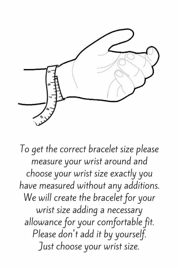 Please choose the appropriate bracelet size in inches but note I will make it with a little allowance for your comfortable wearing.