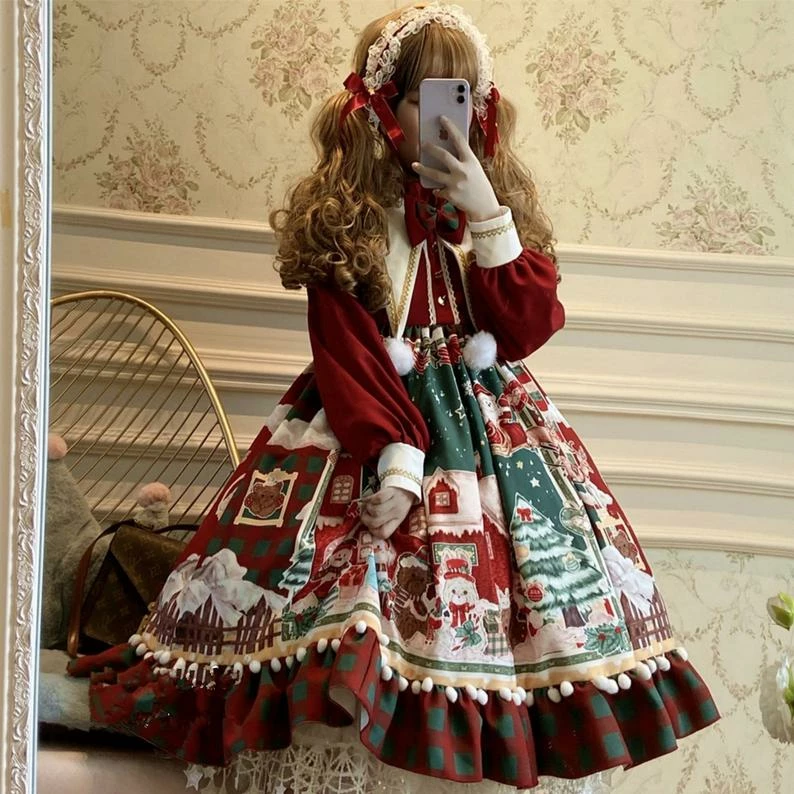 Tailored Ya Store Lolita Dress Santa Snowman Mesh Casual Dress Autumn Women Casual Cute Red Lolita Dress,Snowman Dress,Princess Dress,Party Dress,Costume Dress