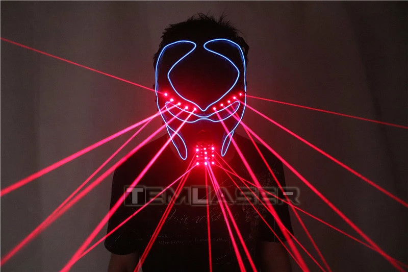Tem-laser Technology Co., Ltd Fashion Red Laser Mask Luminous Light Up Laserman Face Mask Laser Show Halloween Masks For Laser Stage Dancer Party Supplies