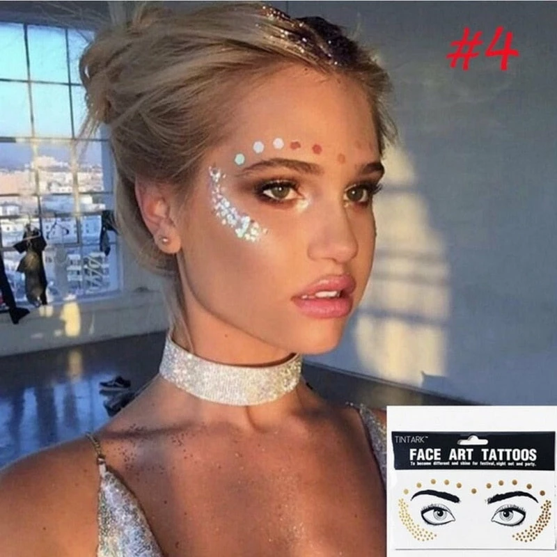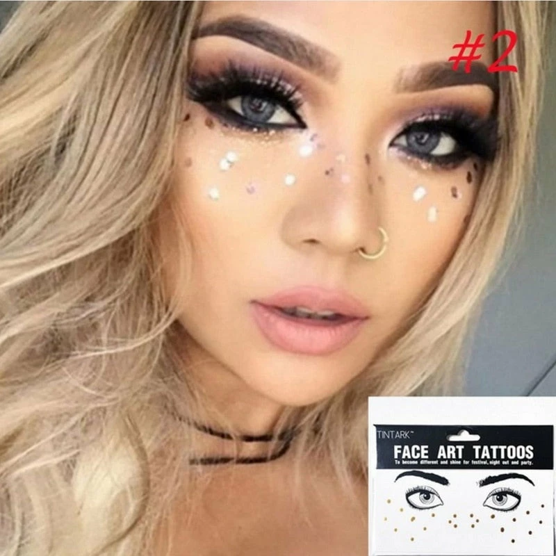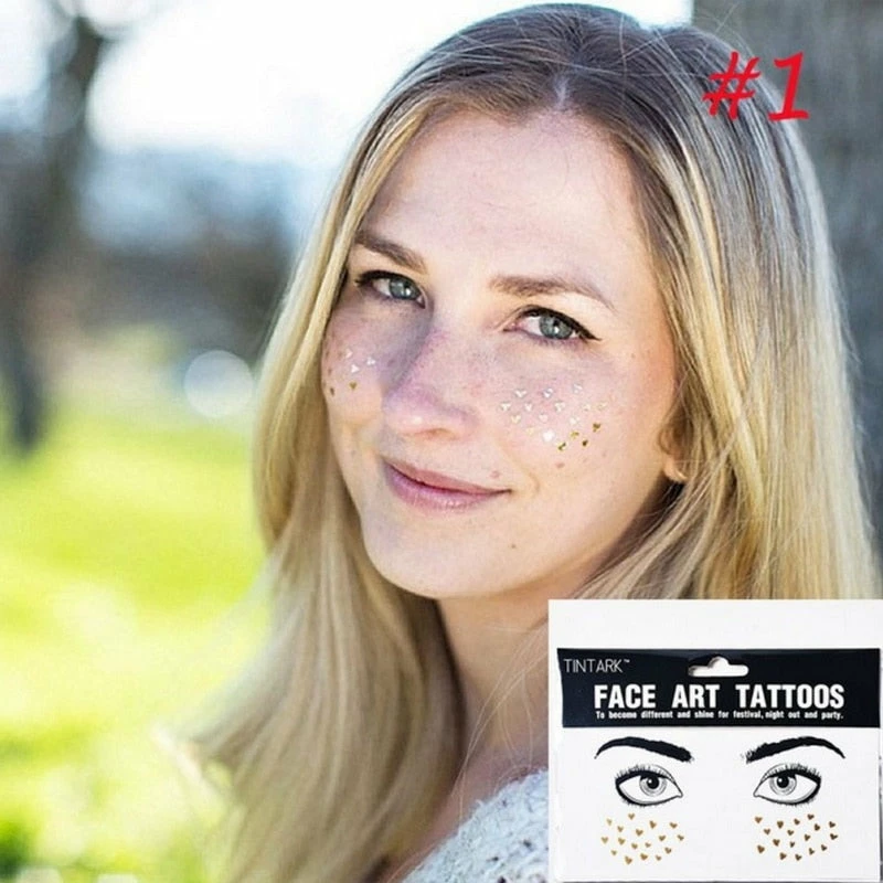The American Store 1 Pack Face Temporary Tattoo Sticker Bling Bling Jewelry Face Eyes Stars Moon Freckle Beauty Makeup Sticker Halloween Temporary Tekashi69 Tattoos