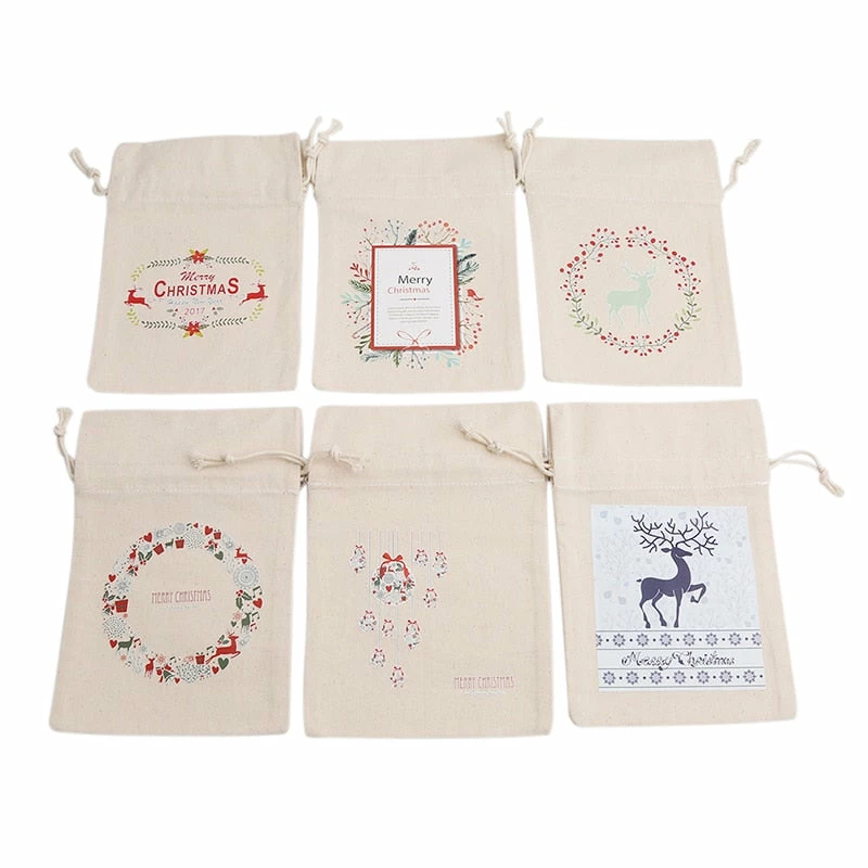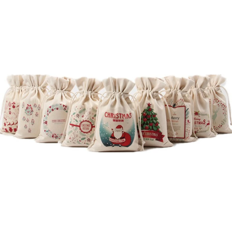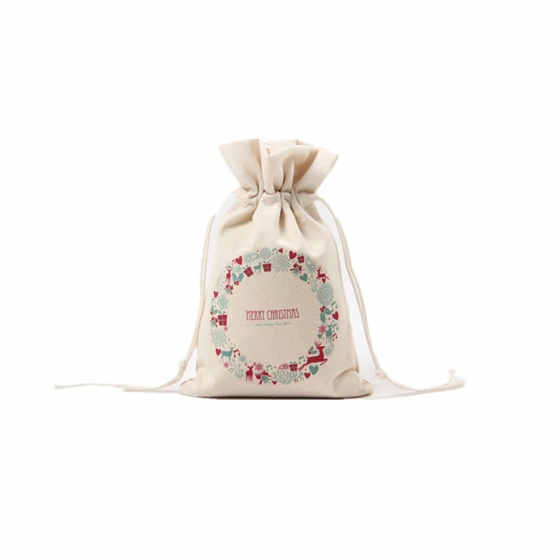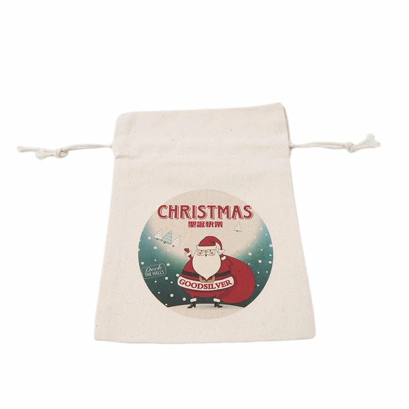 The American Store 1PC 2017 New Year Christmas Candy Bag Santa Claus Drawstring Canvas Sack Tableware Rustic Vintage Stockings Gift Bag GI899499
