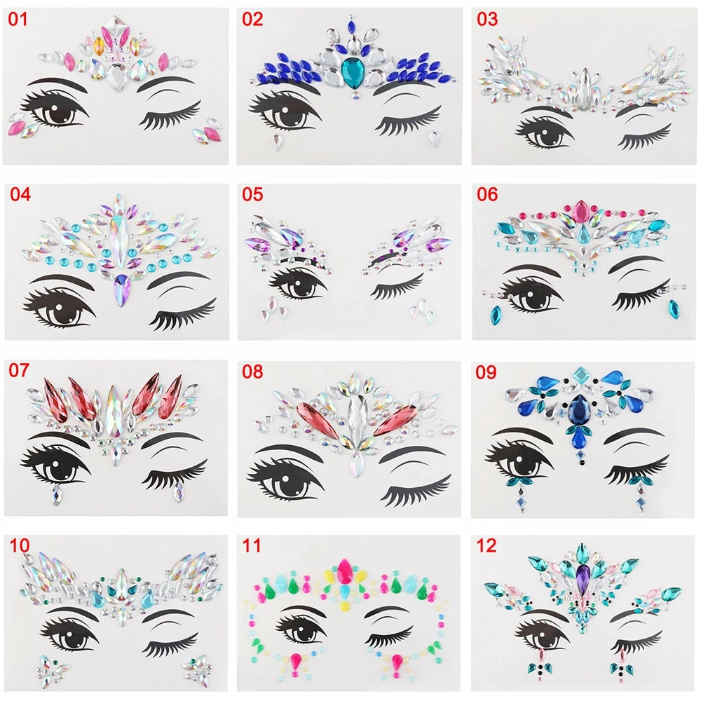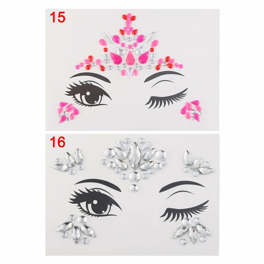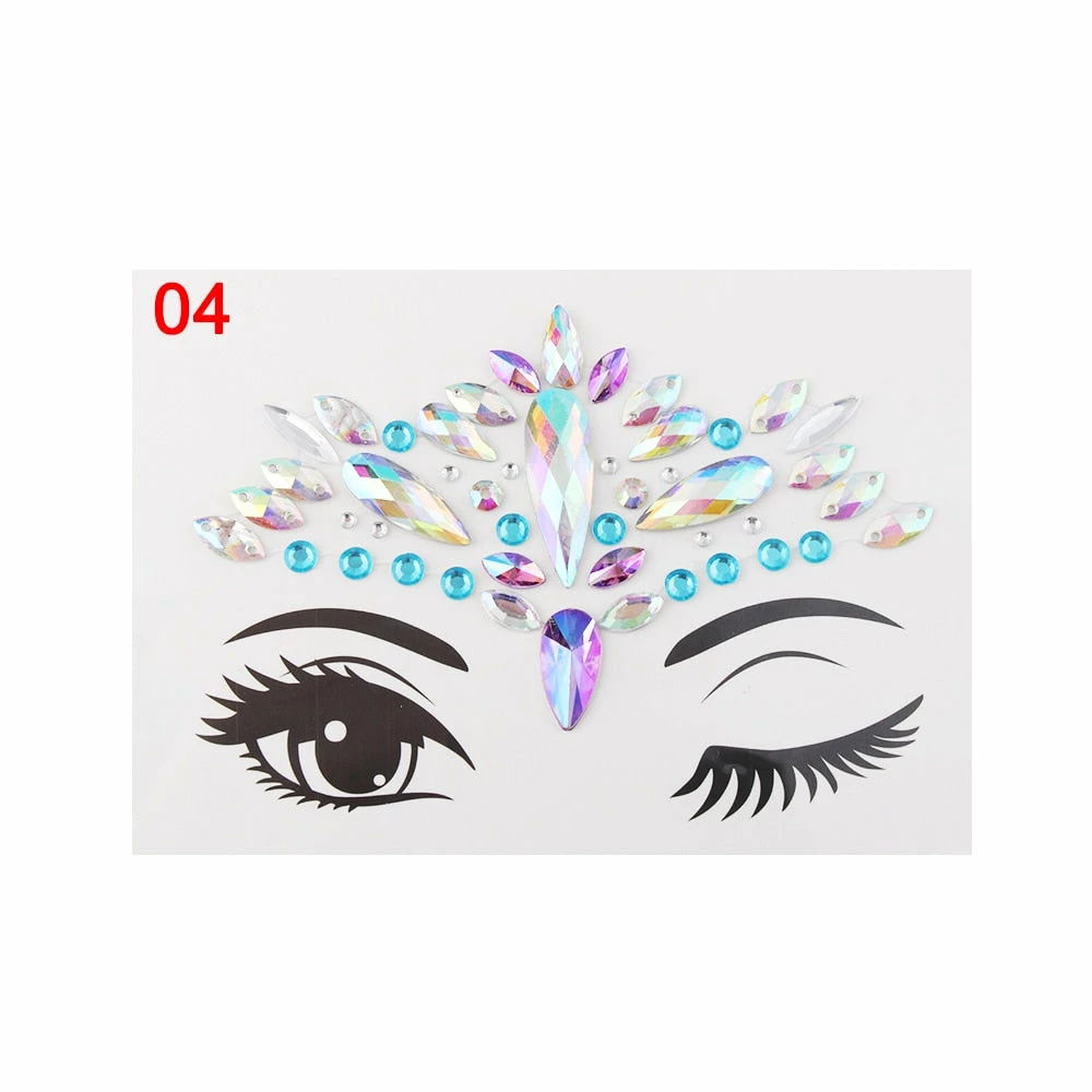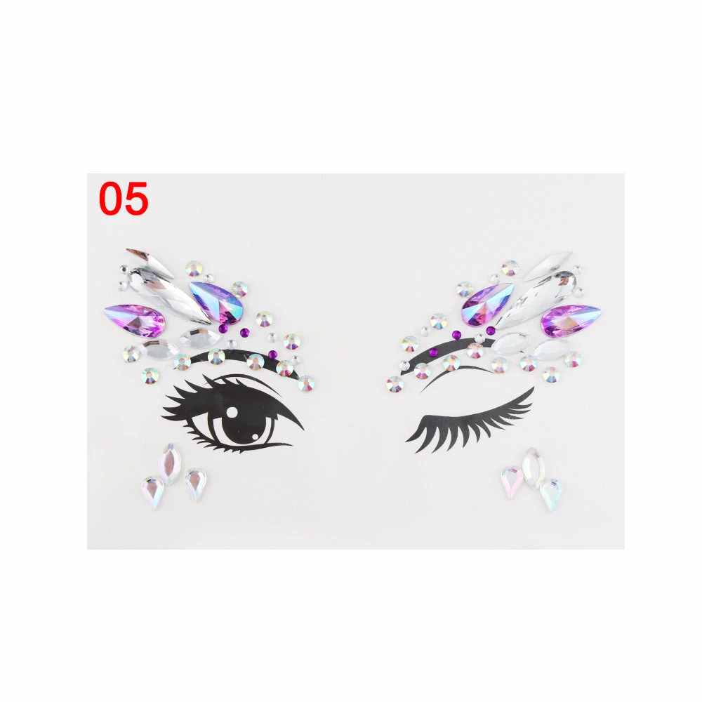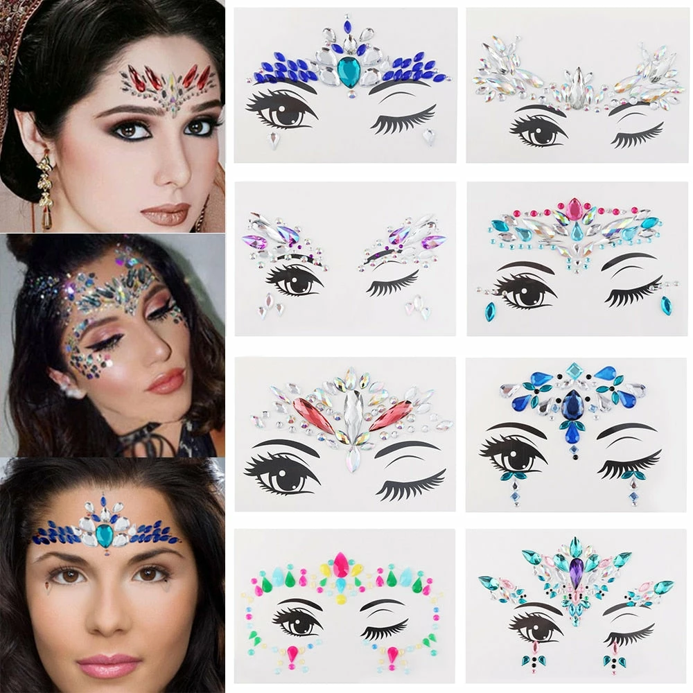 The American Store Adhesive Face Stickers Jewelry Gems Temporary Tattoo Face Jewelry Festival Party Body Gems Rhinestone Flash Tattoos Body Make Up