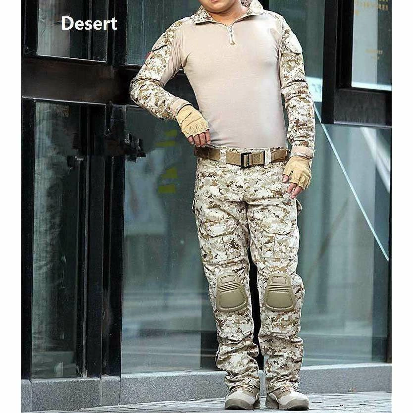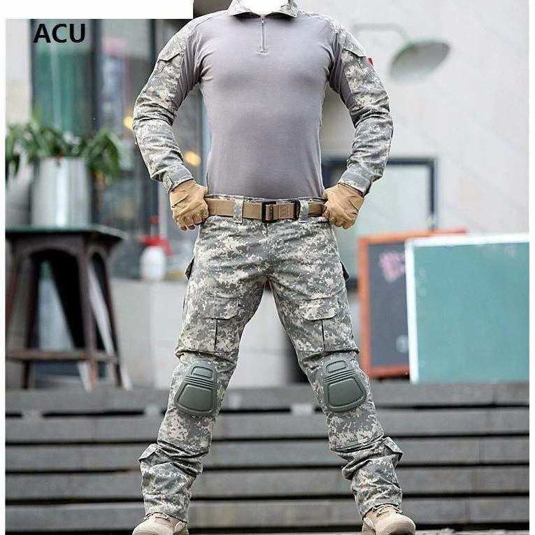 The American Store AichAngeI Tactical Camouflage Military Uniform Clothes Suit Men US Army Clothes Military Combat Shirt + Cargo Pants Knee Pads