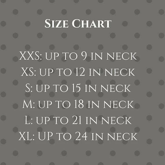 Measure around your pets neck and size up if unsure! Or contact me and we can figure out the size together:) (SEE SIZING PHOTO)