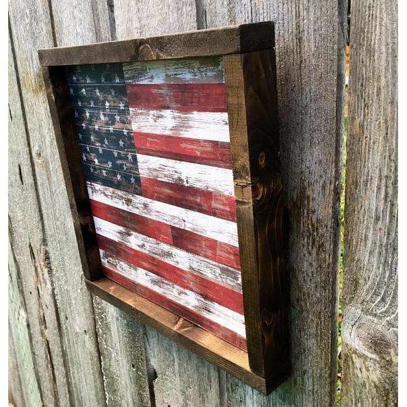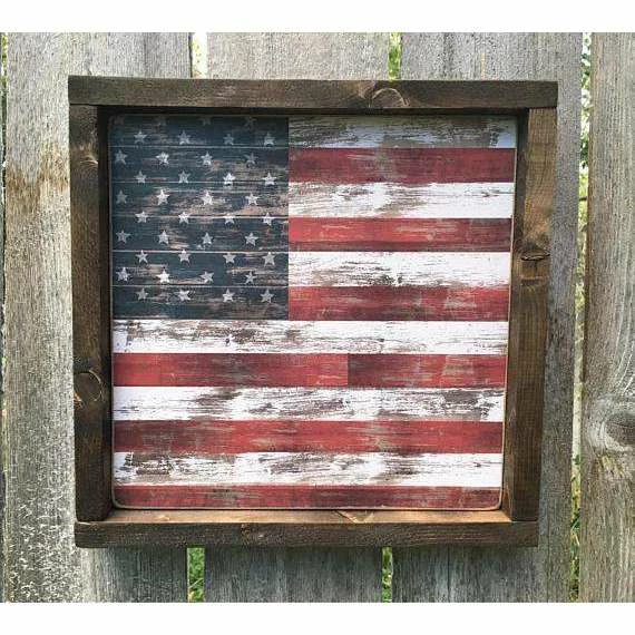 Beautifully framed American flag print wood sign!