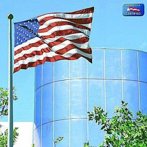 This American Flag, with sewn stripes and embroidered stars is extremely durable all weather flag. This U.S. flag is made from heavyweight spun polyester and engineered to allow wind to pass through, reducing the stress on the flag. It is the best outdoor flag for commercial or institutional use, high wind areas or daily use. It comes with a one year ColorFast Guarantee. Like all of our American flags, it is made in the USA.